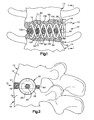 - US5423817 describes an intervertebral fusing device comprising a spiral elastic body having an integrally formed inward spiral ring mount which is inserted into the vertebra, and a spiralling spring body portion.