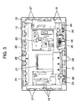 - the housing for receiving panel 11 comprises front frame 12 and metallic back cover 13. Disposed in the opening of front frame 12 is front cover 14 of glass or other material that protects panel 11 and also serves as an optical filter. Front cover 14 is subjected to a silver deposition process, for example, in order to inhibit unnecessary radiation of electromagnetic waves. Additionally, back cover 13 has a plurality of venting holes 13a for releasing heat generated by panel 11 and other components to the outside.