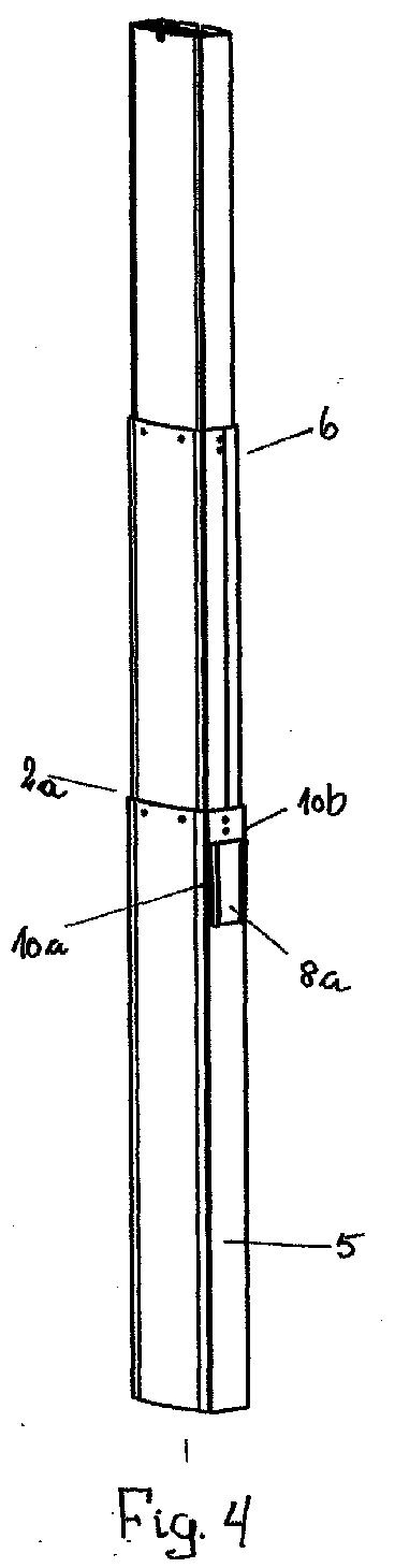 - the columns are interconnected by a cross member 4 consisting of a profile having a rectangular cross-section closed at both ends.