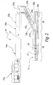 - the apparatus 10 further comprises cleaning and drying means 24a and 24b of a per se known type for the outgoing cable 16 and 17; such means are arranged on the corresponding supporting structures 22a and 22b, downstream of the second portion 19b and 20b, and upstream of the guiding wheel 25a and 25b.
