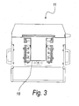 - Each one of the end portions 19 and 20 supports, with a rotary coupling, a corresponding pulley 21a and 21b for guiding the cables 16 and 17 being treated from the direction of the rectilinear extension of the central portion 18 to the direction of the longitudinal extension of the corresponding second portion 19b and 20b.