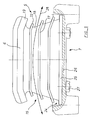- Fig. 3 is a side view of the spring saddle 5 in the vehicle longitudinal direction seen with the lower metal plate 7 the rubber body 15 of the upper metal plate 6 and the upper rubber layer 8.