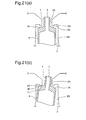 - the nozzle has a nozzle tip with a diameter smaller than the ceiling opening, and a nozzle body having a diameter larger than the ceiling opening and continued to the nozzle tip, the nozzle tip protrudes outside from the ceiling opening so as to make the fluid jetting spout locate to the outside of the ceiling opening, the nozzle makes contact with the another place by contacting the ceiling opening wall around the nozzle, and adopts the inclined posture at two places of the ceiling opening wall contact portion and the chamber ceiling wall contact portion, and the nozzle tip contacts the ceiling opening wall, and the step portion of the nozzle tip and the nozzle body contacts the chamber ceiling wall.