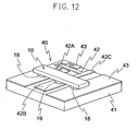 - One of the two electrodes 111, 114 of the pill-type package 110 is pierced through a hole formed in a flat insulating substrate 121 of e.g. alumina and is electrically connected to a ground electrode 122 formed on a rear surface of the flat insulating substrate 121, while the other one is connected by a gold ribbon 123 to a signal line 124 formed on the plate substrate 121 as a microstrip line.