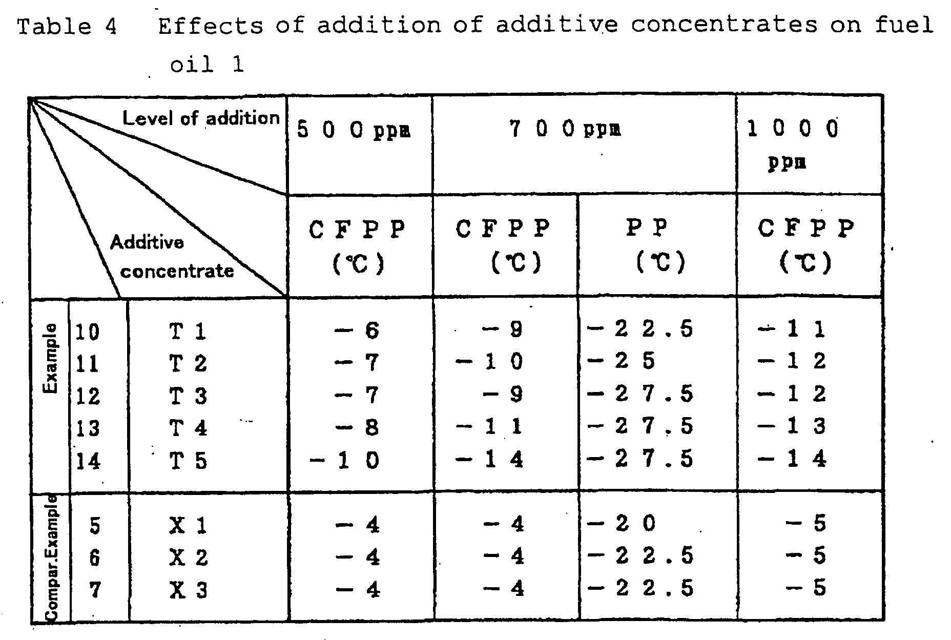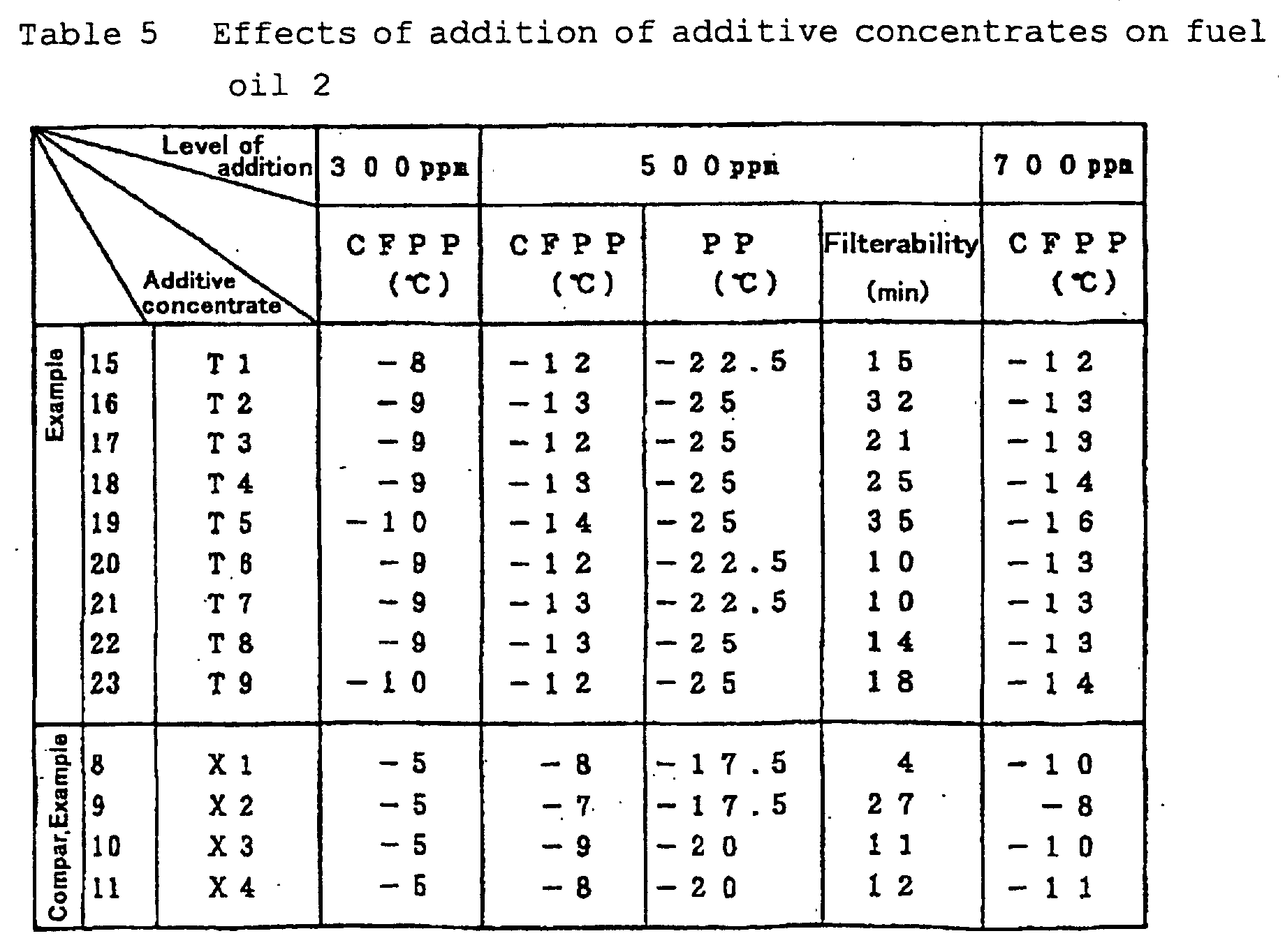 • This difference is preferably as large as practicable, for the larger the difference is, the greater is the degree of improvement in low temperature fluidity that can be attained by addition of the flow improver.