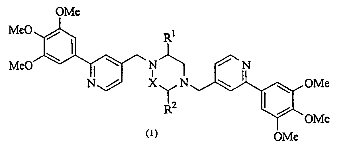- the present invention relates to novel cyclic diamine compounds which have inhibitory effects on both cell adhesion and cell infiltration and are useful as anti-asthmatic agents, anti-allergic agents, anti-rheumatic agents, anti-arteriosclerotic agents, anti-inflammatory agents or the like, and medicines containing such compounds.