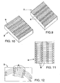 - G02B6/0036—2-D arrangement of prisms, protrusions, indentations or roughened surfaces