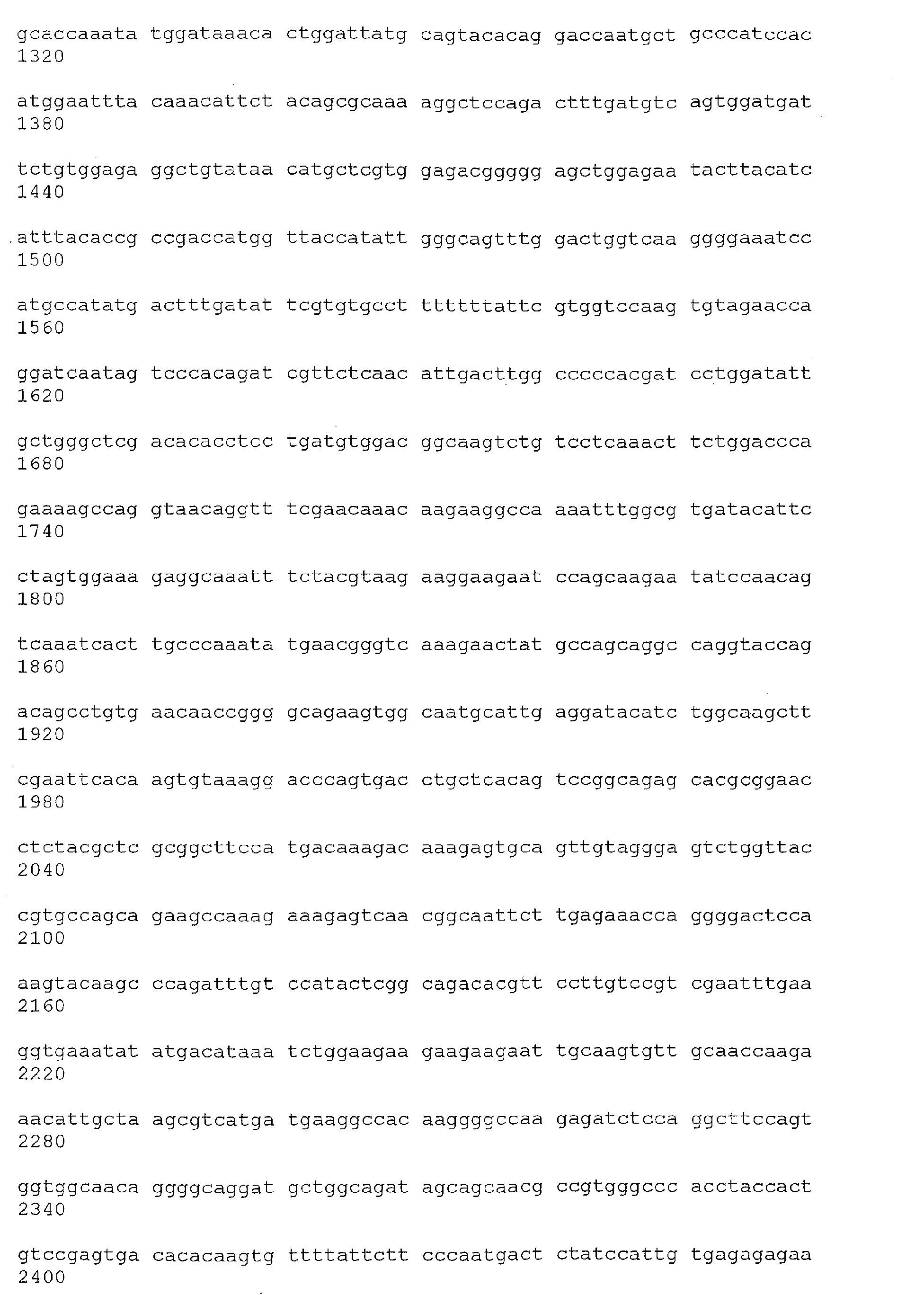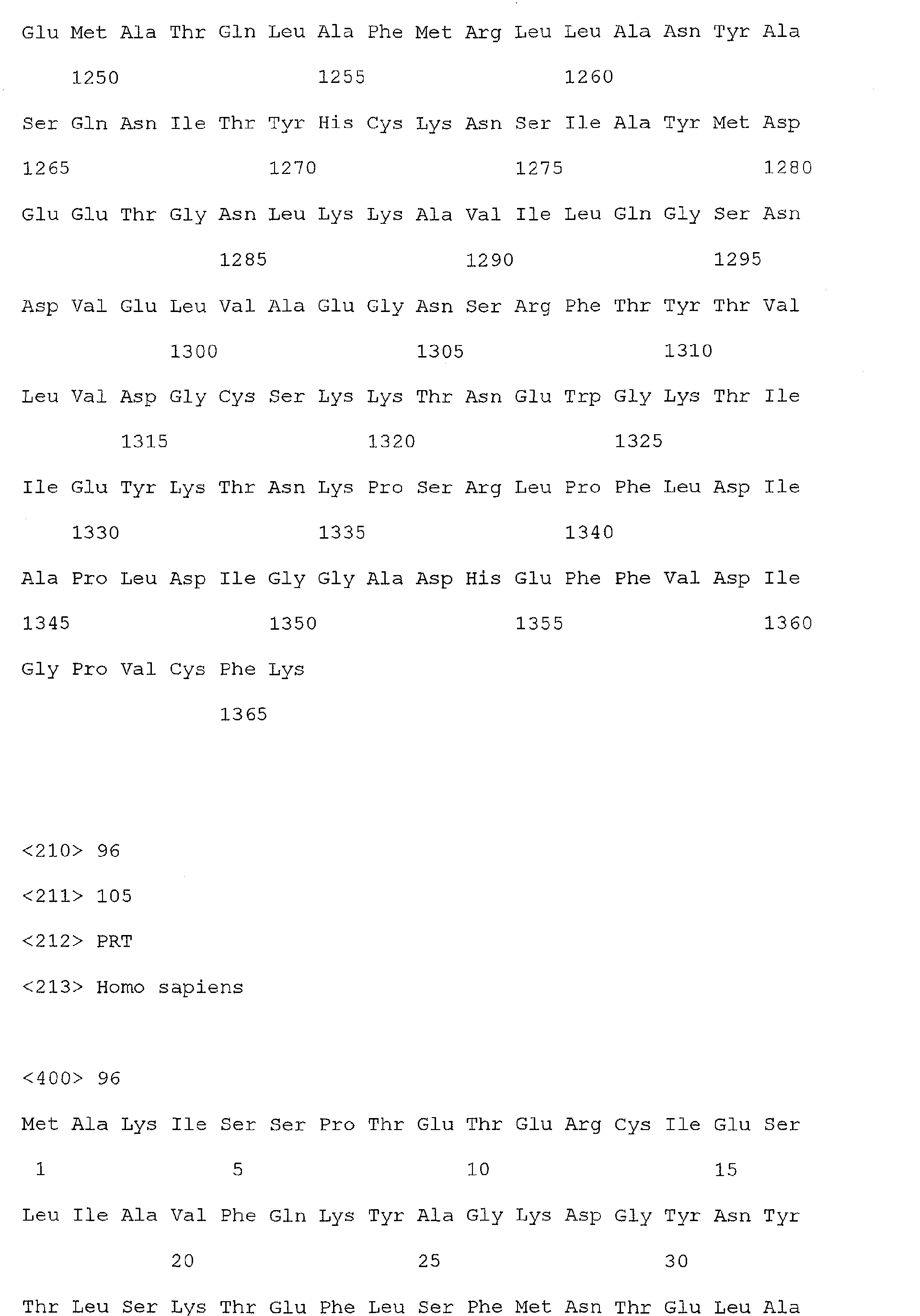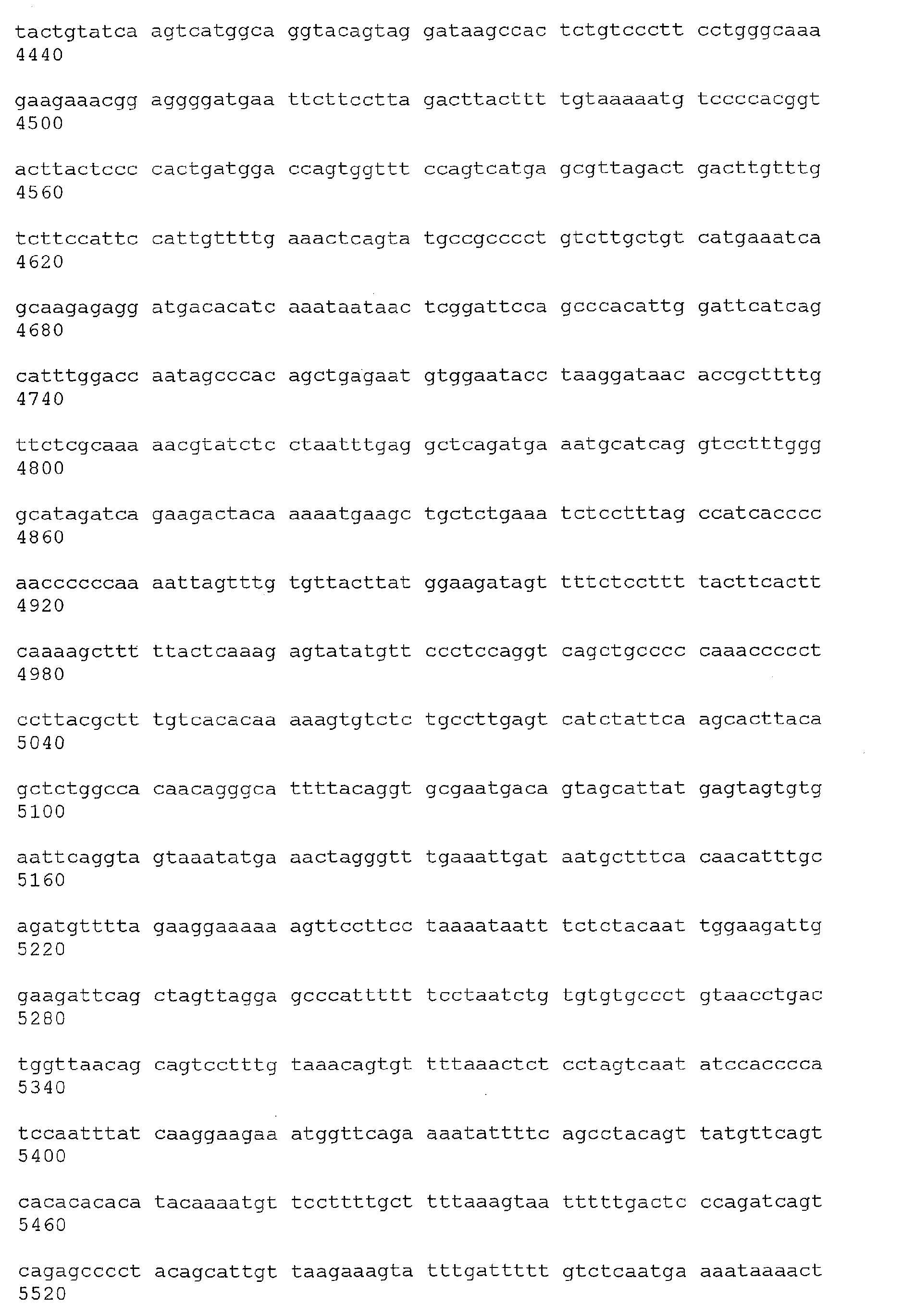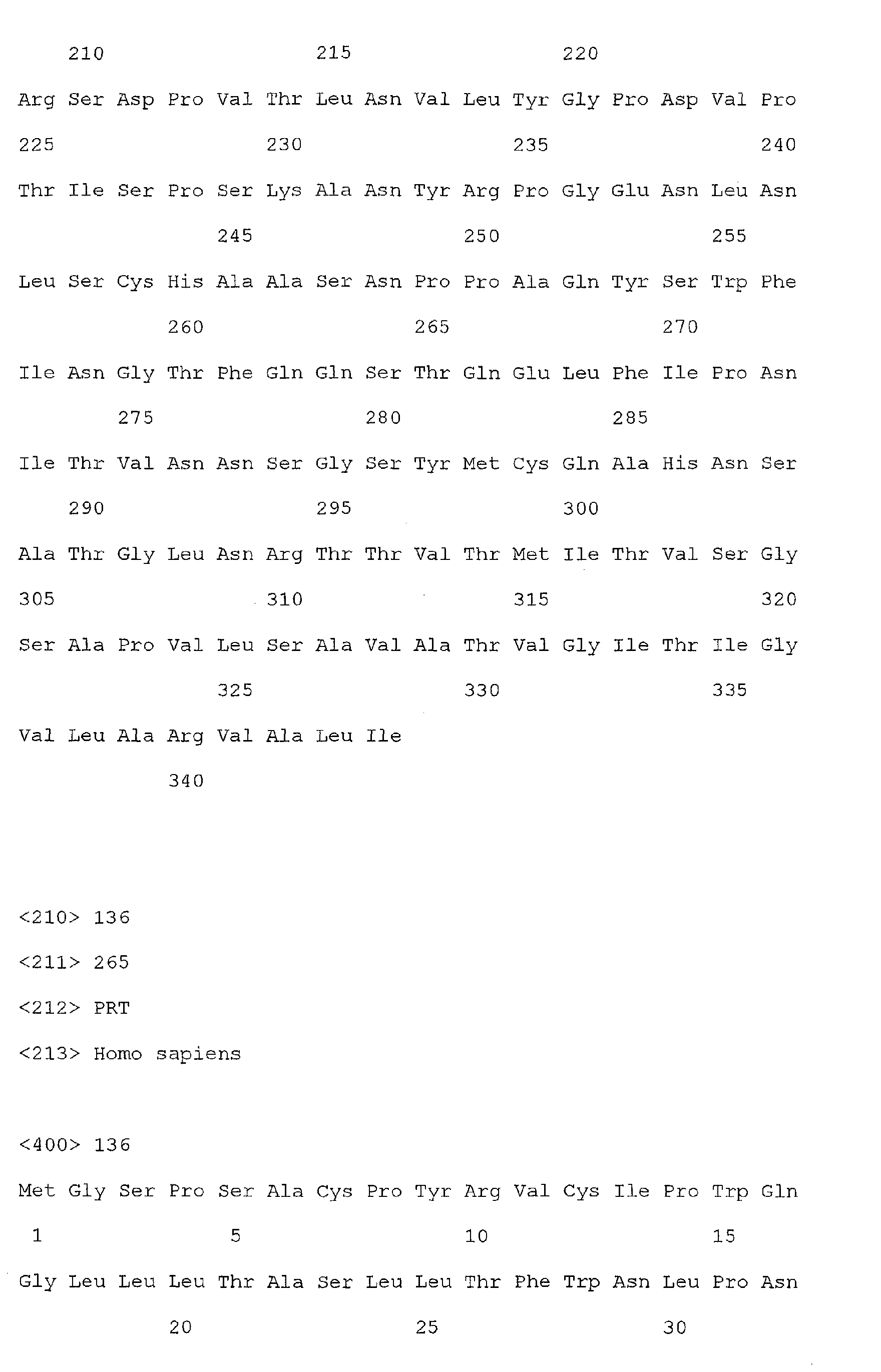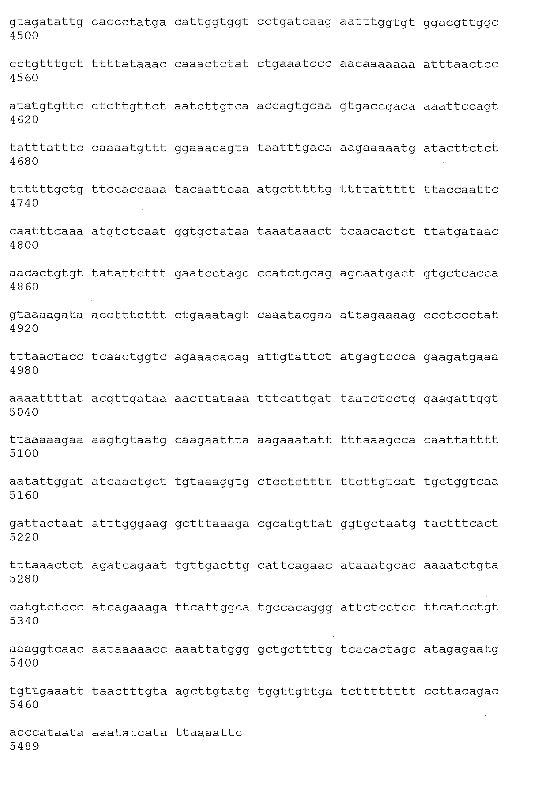 - the method comprises: obtaining a clinical sample from the individual and detecting the presence of one or more of the nucleic acid sequences of SEQ ID Nos. 1, 3, or 5-71, or the amino acid sequences of SEQ ID Nos. 2, 4, or 72-138.