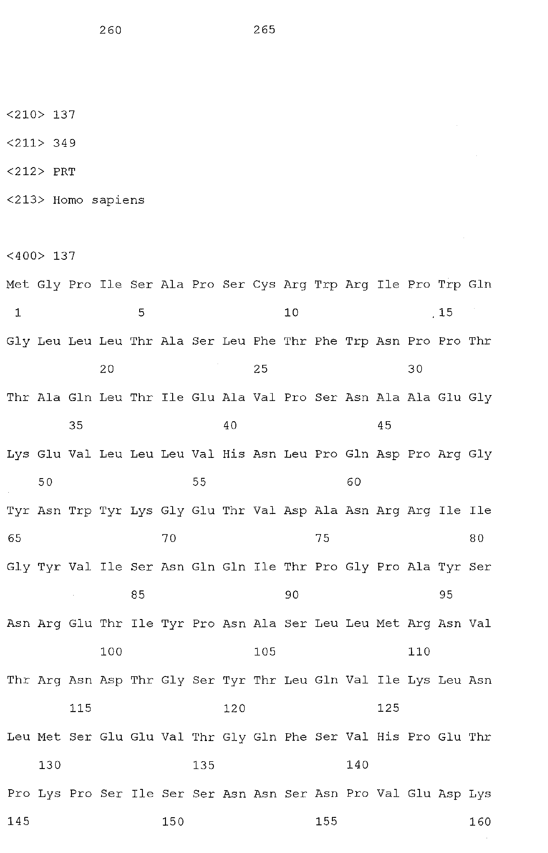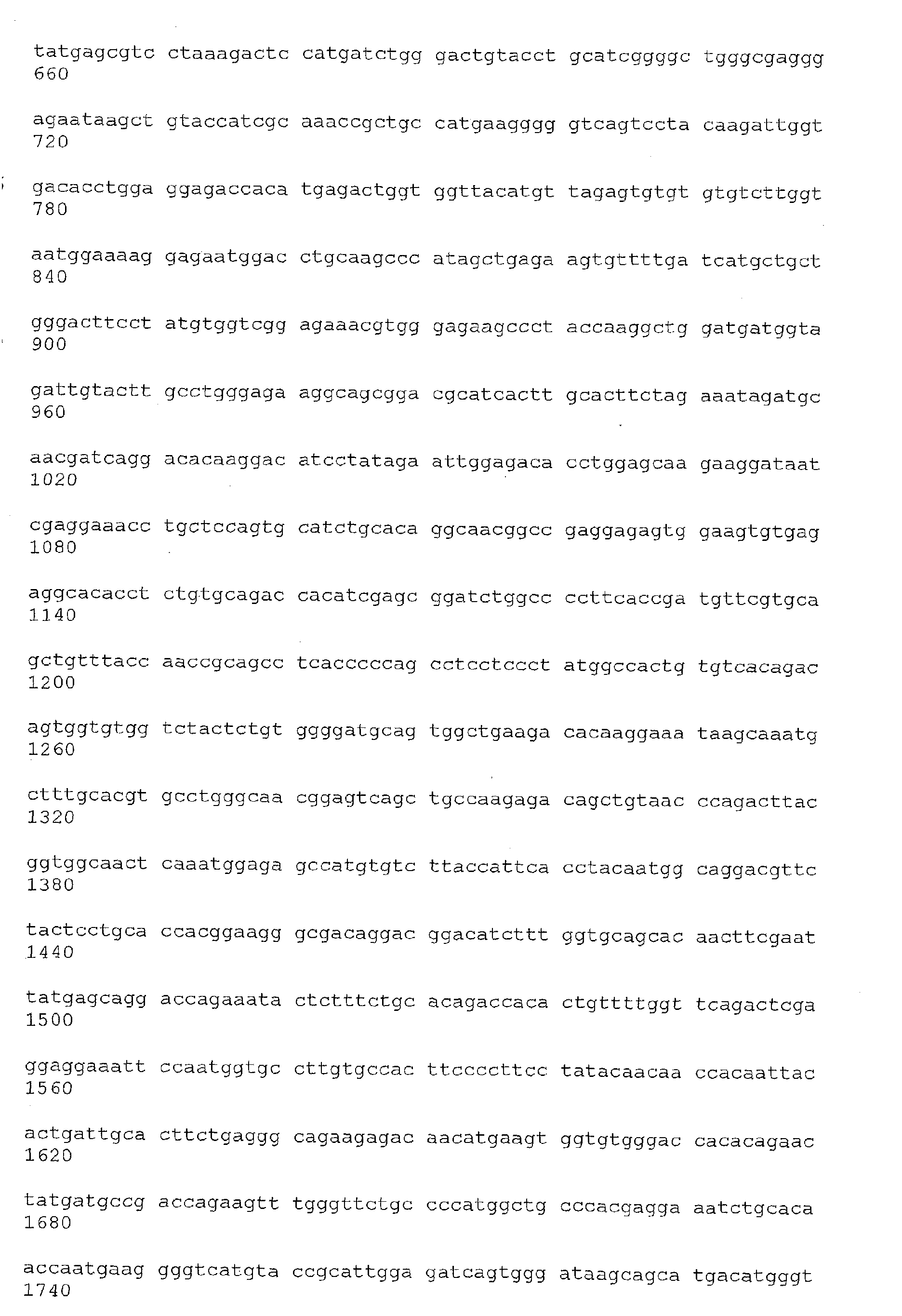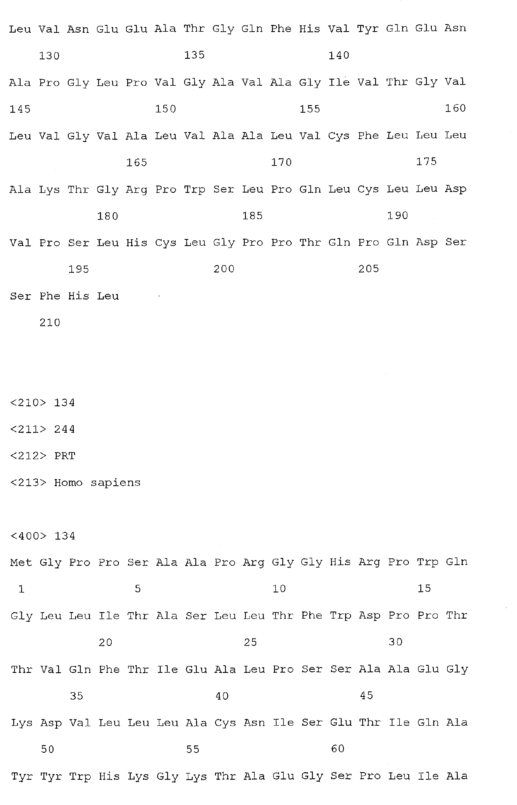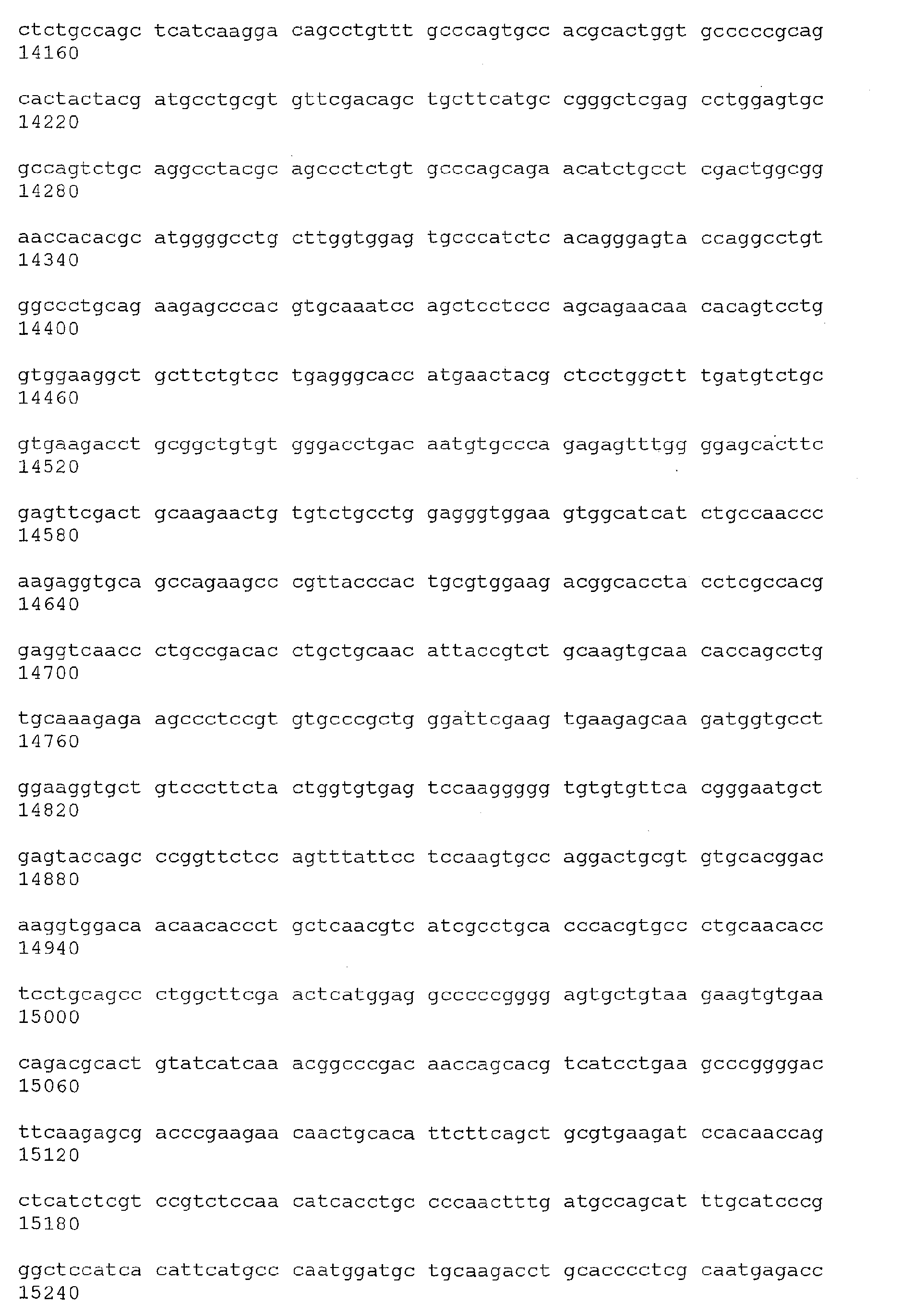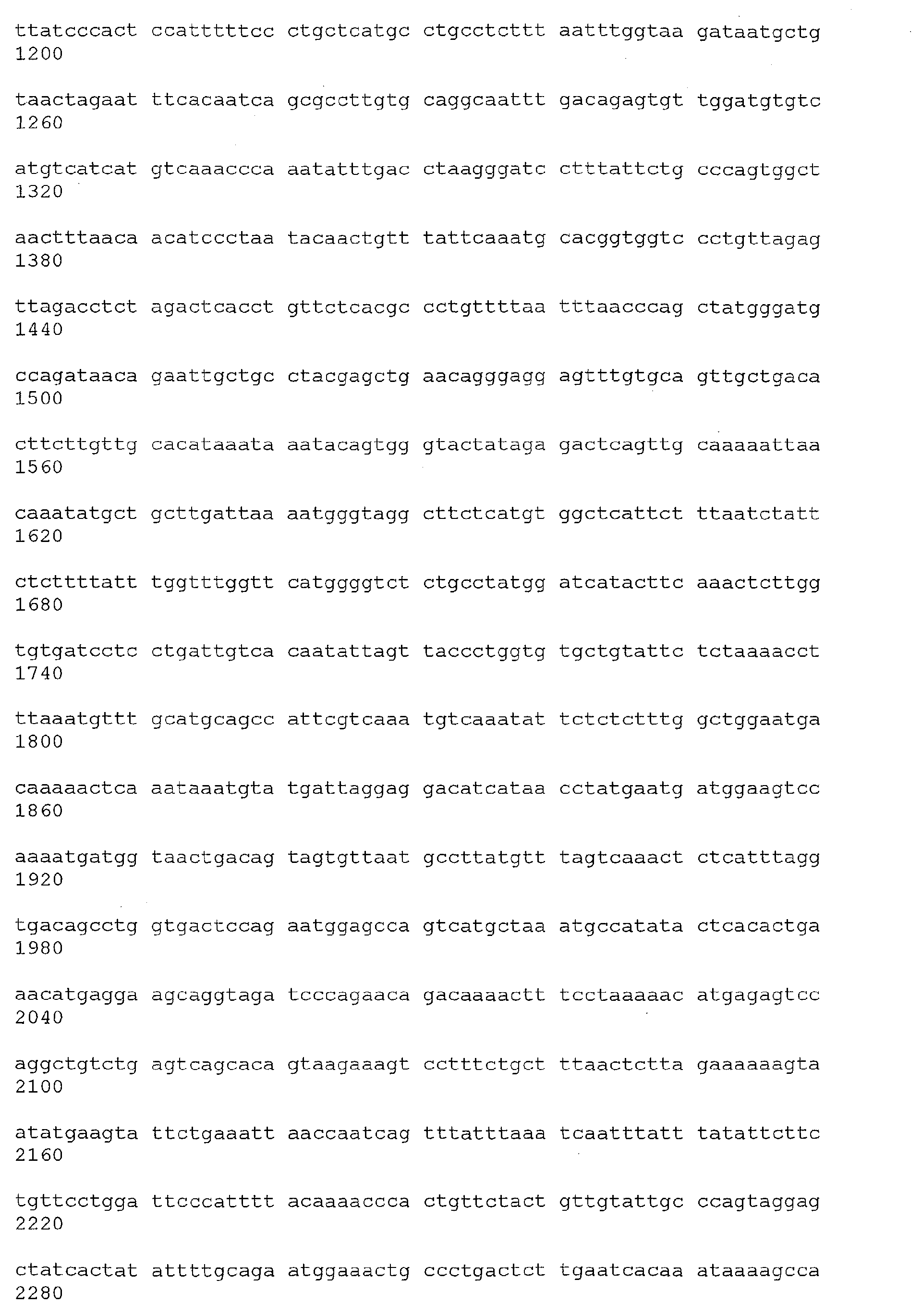 - the method comprises: obtaining a clinical sample from the individual and detecting the presence of one or more of the nucleic acid sequences of SEQ ID Nos. 1, 3, or 5-71, or the amino acid sequences of SEQ ID Nos. 2, 4, or 72-138.