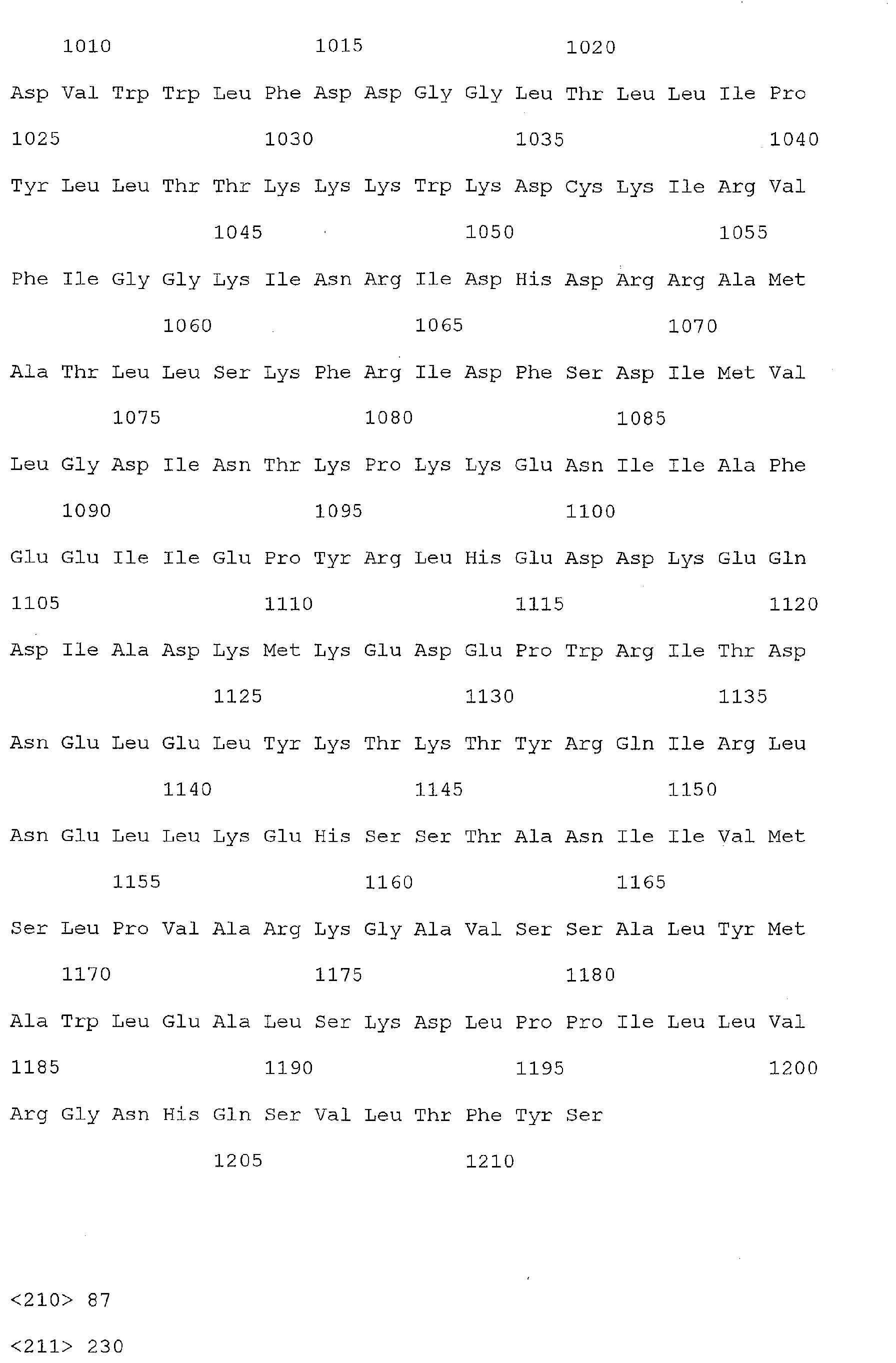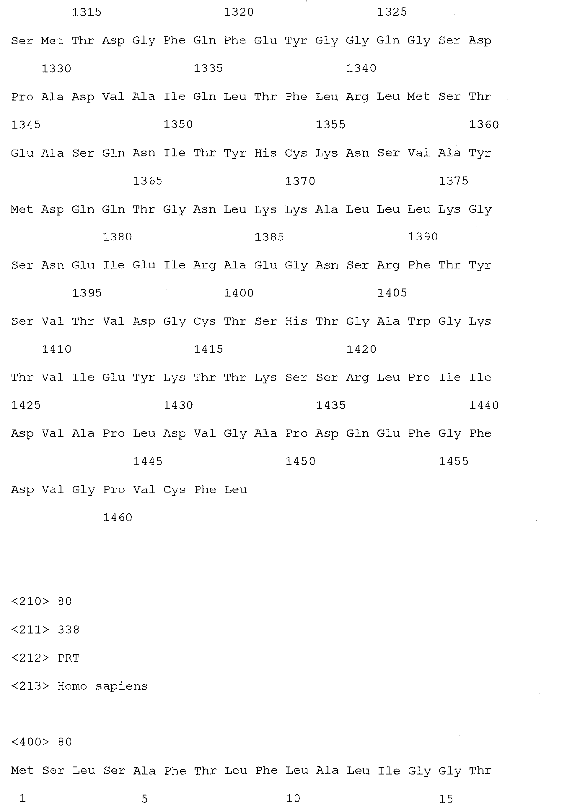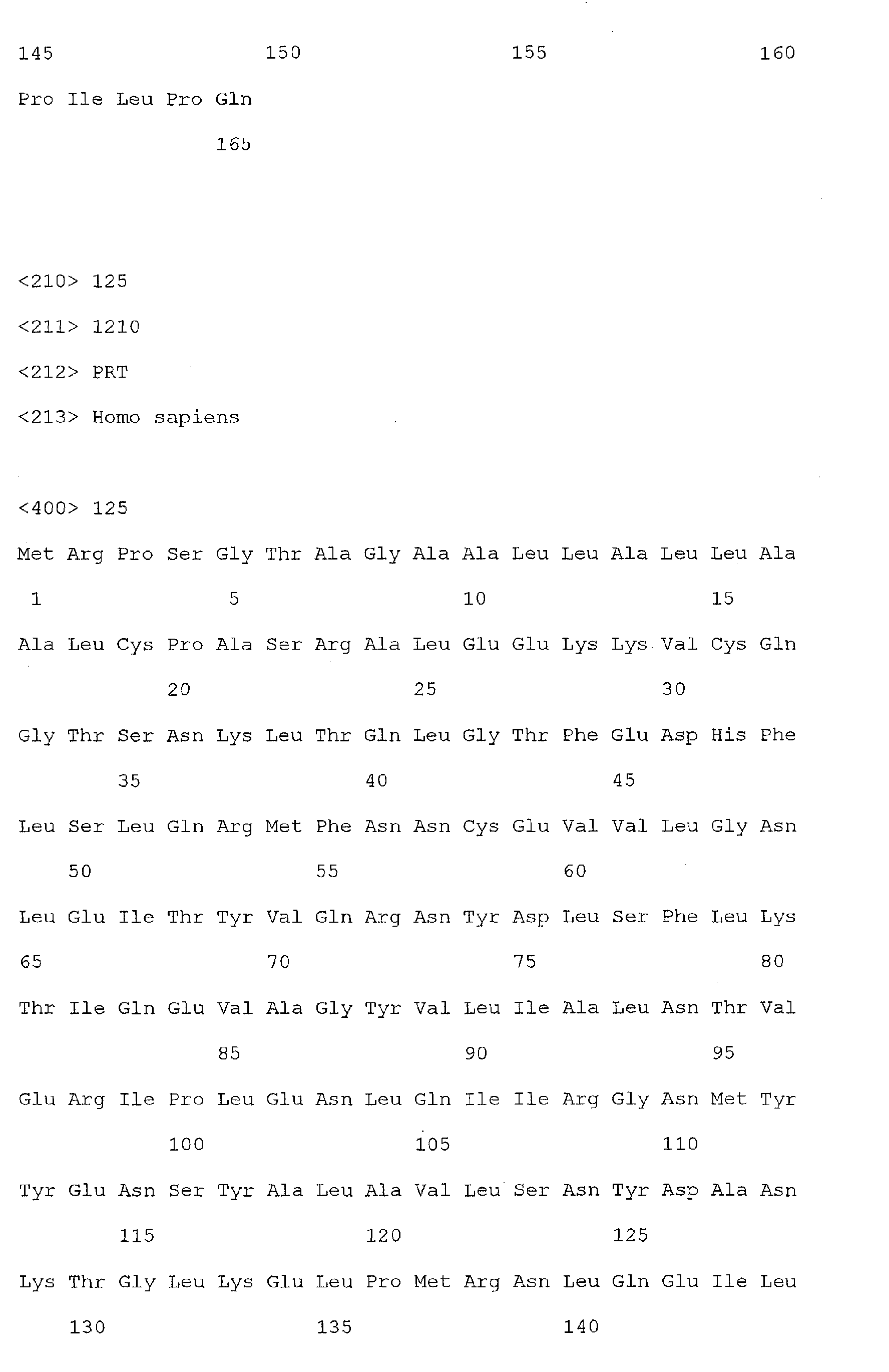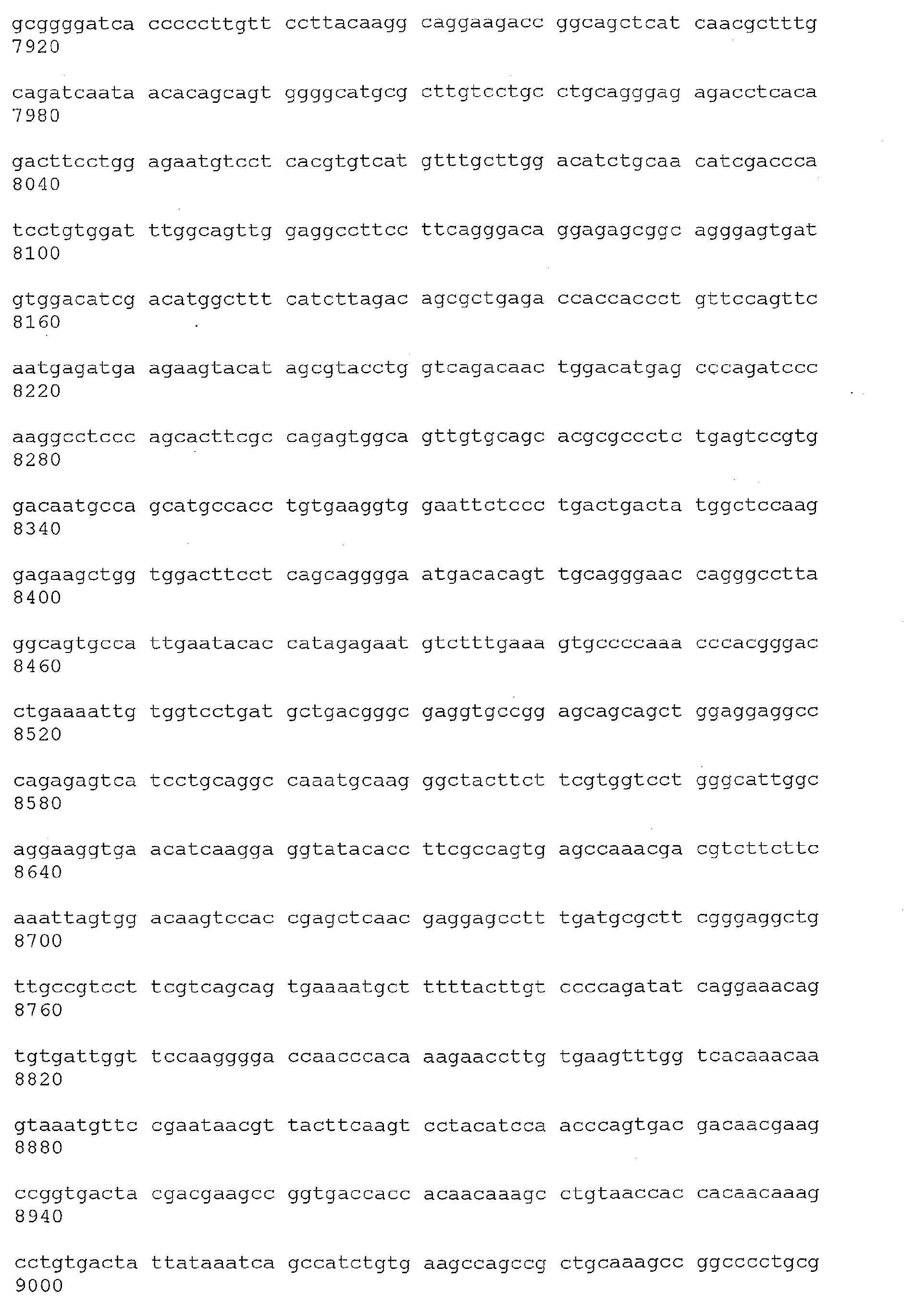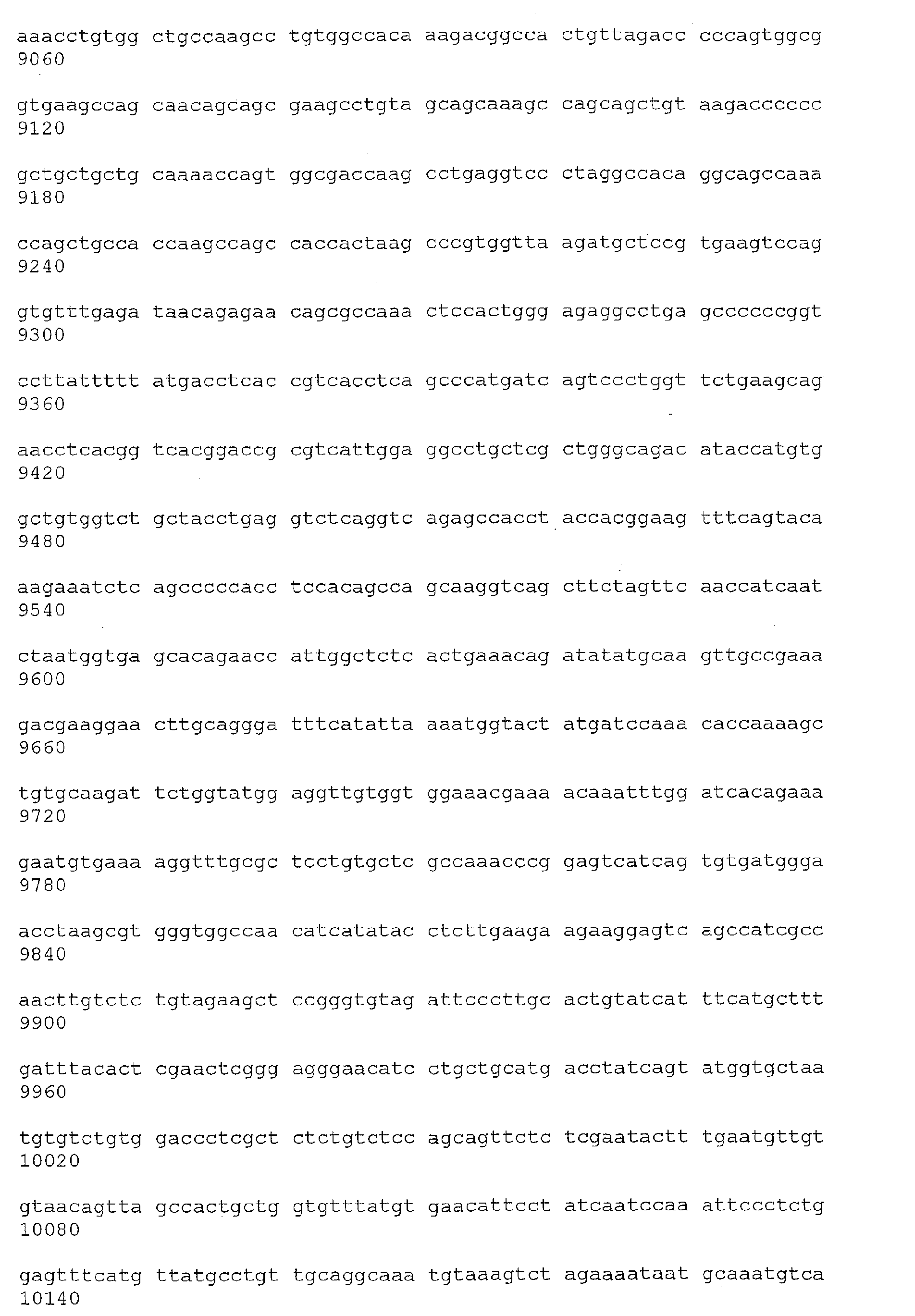 - the method comprises: obtaining a clinical sample from the individual and detecting the presence of one or more of the nucleic acid sequences of SEQ ID Nos. 1, 3, or 5-71, or the amino acid sequences of SEQ ID Nos. 2, 4, or 72-138.