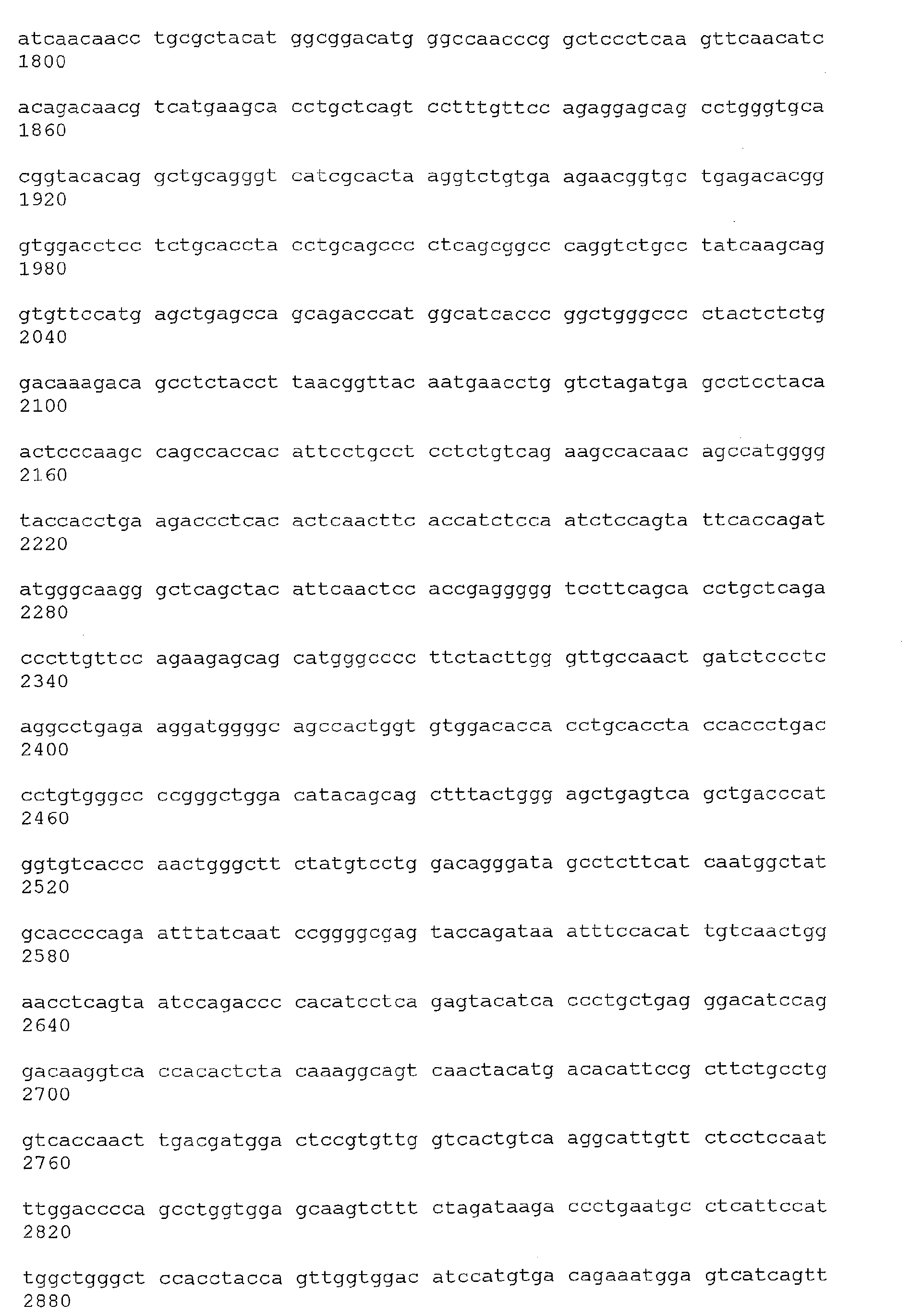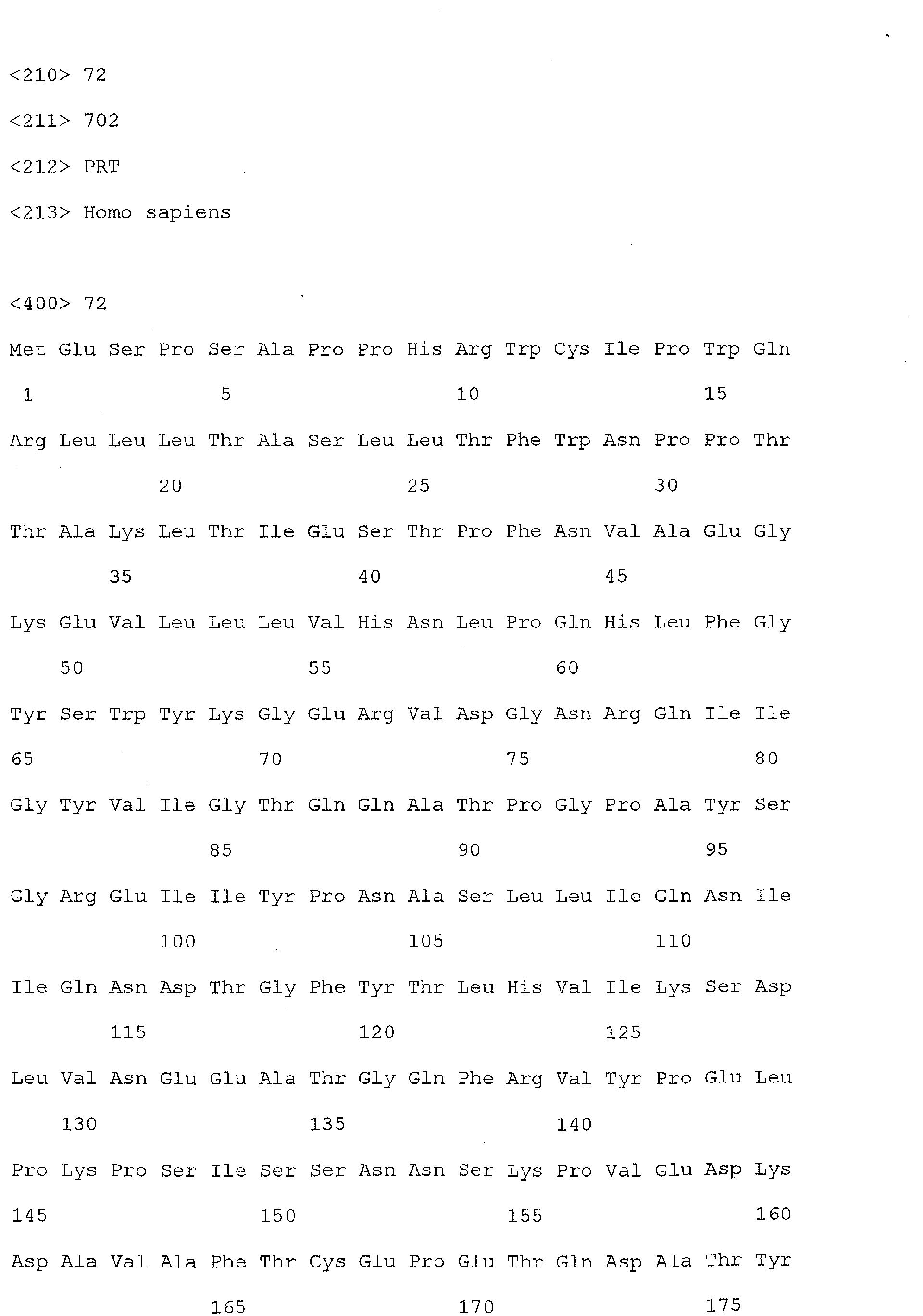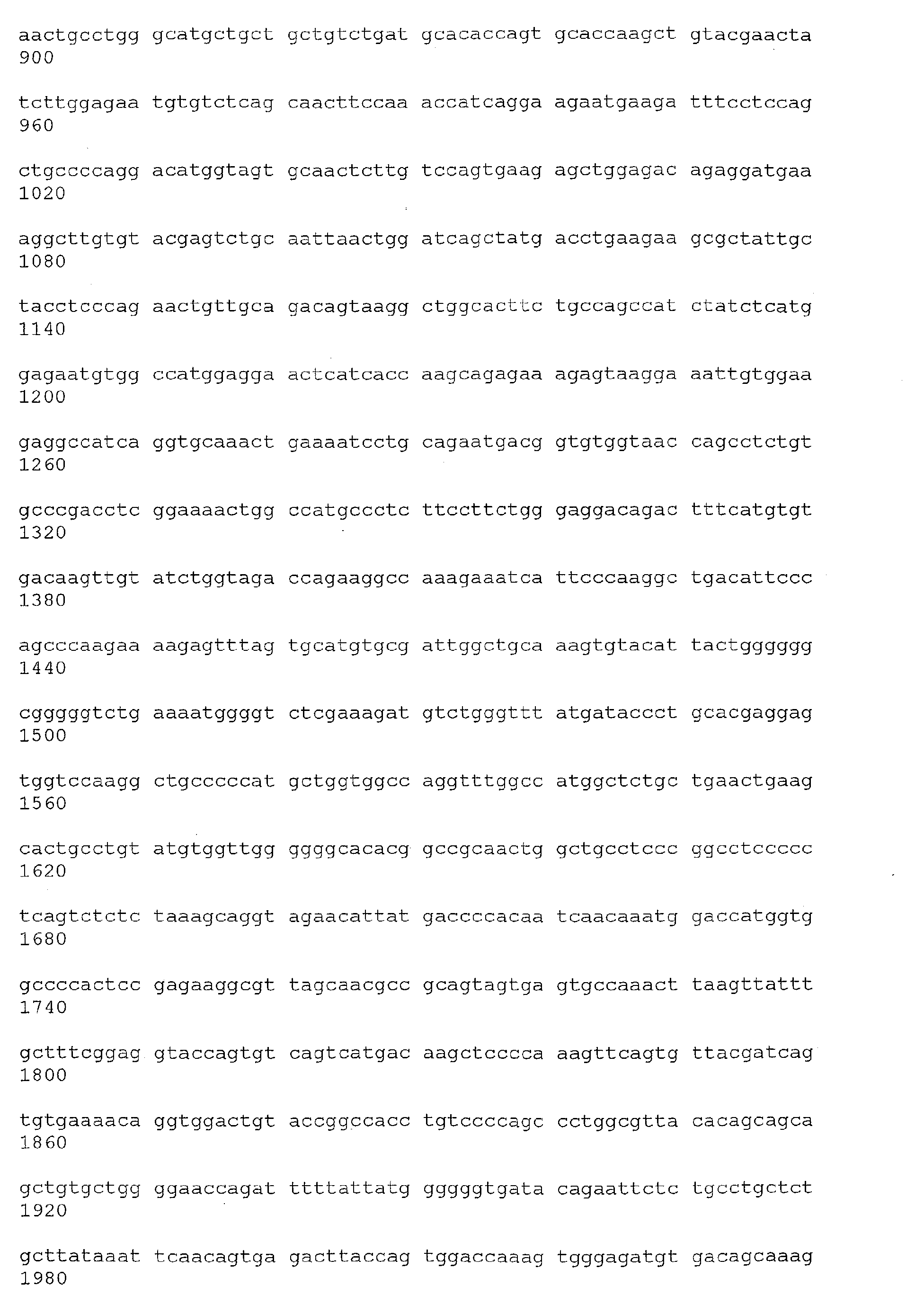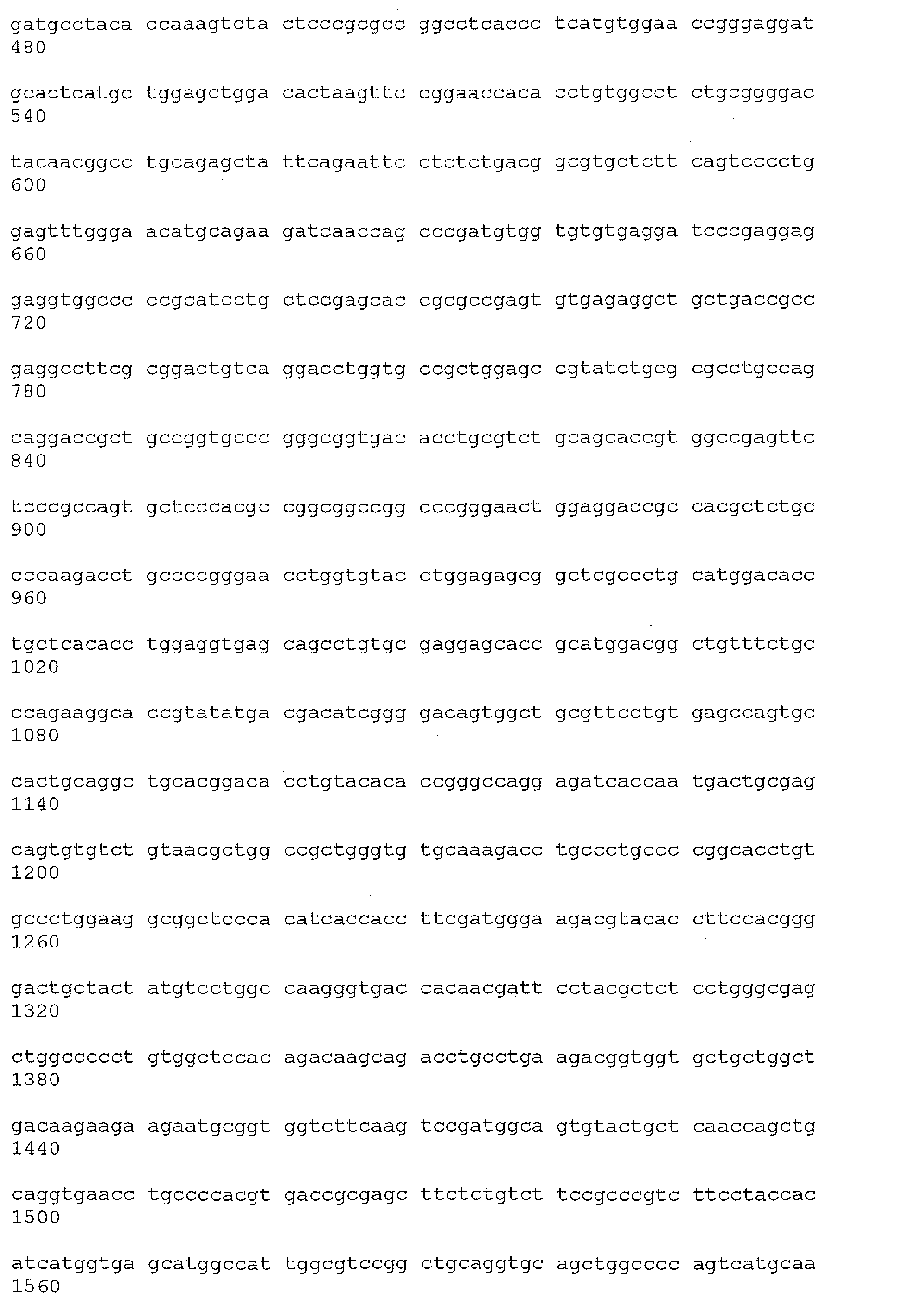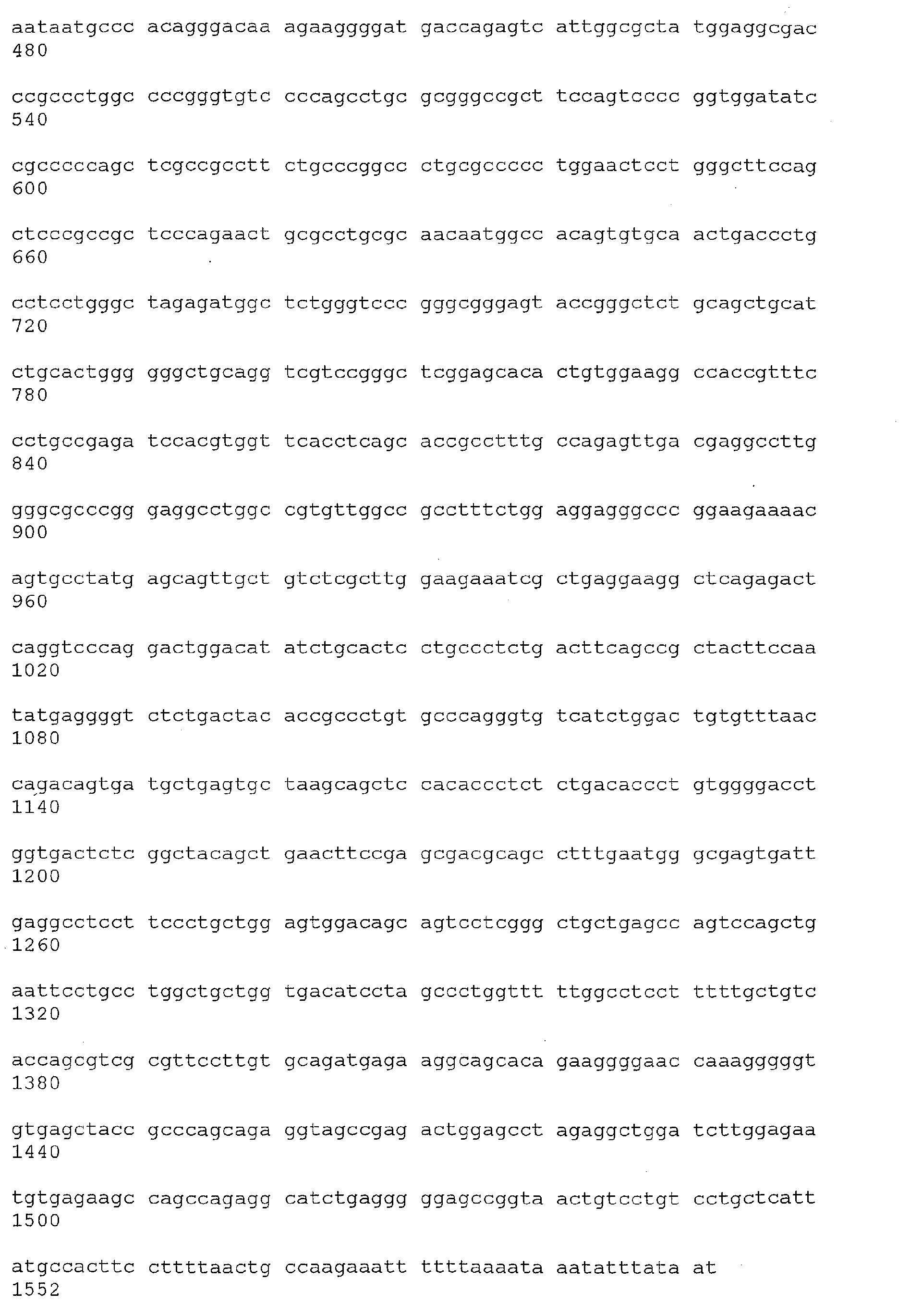 - the colorectal cancer associated marker may comprise, for example, one or more of the nucleic acid sequences of SEQ ID Nos 1, 3, or 5-71, or the amino acid sequences of SEQ ID Nos 2, 4, or 72-138, or derivatives or homologs thereof having substantially the same binding specificity.