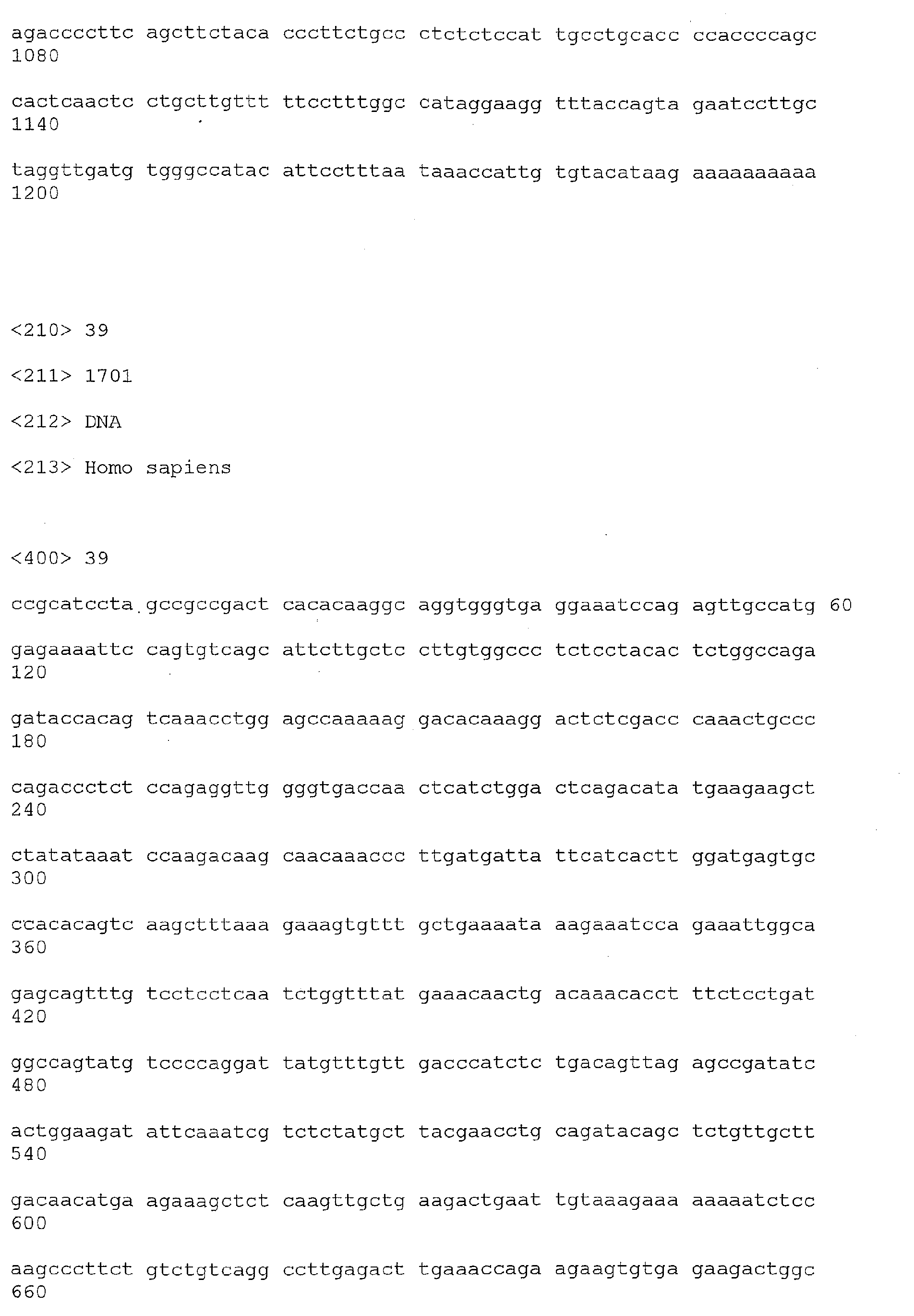 - TIMP1 as used herein, also refers to a nucleotide which is encoded by the sequence of SEQ ID NO: 33, or a functional homolog thereof.