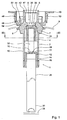 - a closing body 12 has been secured in the tubular part 10, with projections 16 extending into recesses 14, which closing body 12 is provided, on the side facing the valve body 4, with a supporting element 18, provided with a central part 20 and a number of spokes 22, between which passage openings 24 are provided.
