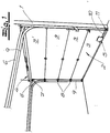 - the guide rail has a vertical portion along the door frame, a horizontal portion parallel to the leading edge of the head rail and an arc connecting the two sections.