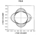 - the vibration trajectories shown in Fig. 1 represent vibration displacement in the A phase and the B phase on the horizontal axis and vertical axis, respectively. Vibrations as shown in Fig. 1 are excited on the vibrating body 1 by the driving signals shown in Fig. 2.