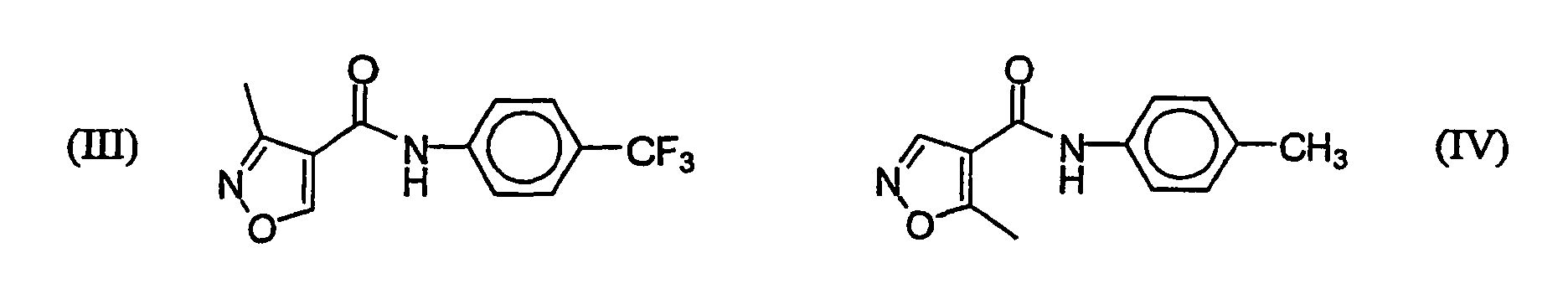 - SNUBGILHVSSQAY-UHFFFAOYSA-N 3-methyl-n-[4-(trifluoromethyl)phenyl]-1,2-oxazole-4-carboxamide Chemical compound CC1=NOC=C1C(=O)NC1=CC=C(C(F)(F)F)C=C1 SNUBGILHVSSQAY-UHFFFAOYSA-N 0.000 abstract description 6