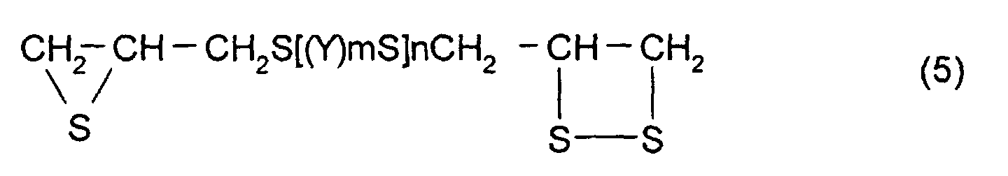 - polythioepoxy compounds which are represented by formula (5), obtained by thiation of polyepoxy compounds