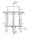 - the casing 1 is attached at its lower end to a bottom plate 4 that can be moved along parallel rods 5, 6 and 7.