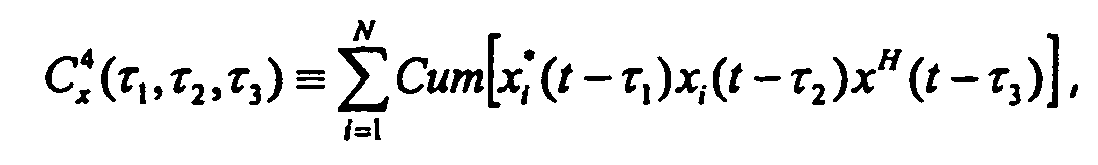 - a technique for performing blind source separation (BSS) in accordance with the present invention utilizes cumulants in conjunction with spectral estimation of the signal subspace to perform the blind separation of statistically independent signals with low signal-to-noise ratios under a narrowband assumption.