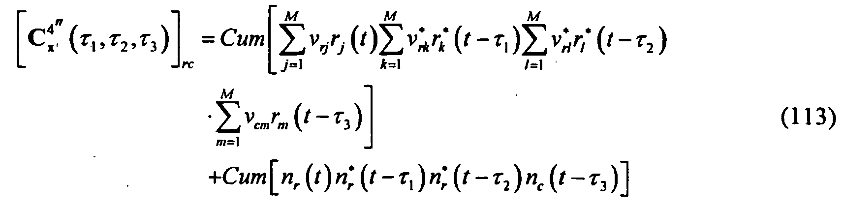 - This technique was developed as a blind single-input single-output (SISO) channel identification technique for use in blind equalization (See, for example, L. Tong, G. Xu, and T. Kailath, "Blind Identification and Equalization Based on Second-Order Statistics: A Time-Domain Approach," IEEE Trans. Information Theory, Vol. 40, No. 2, Mar. 1994, pp. 340-349 , ), and was later adapted to perform the blind separation of cyclostationary signals (See, for example, L. Castedo and A.R.
