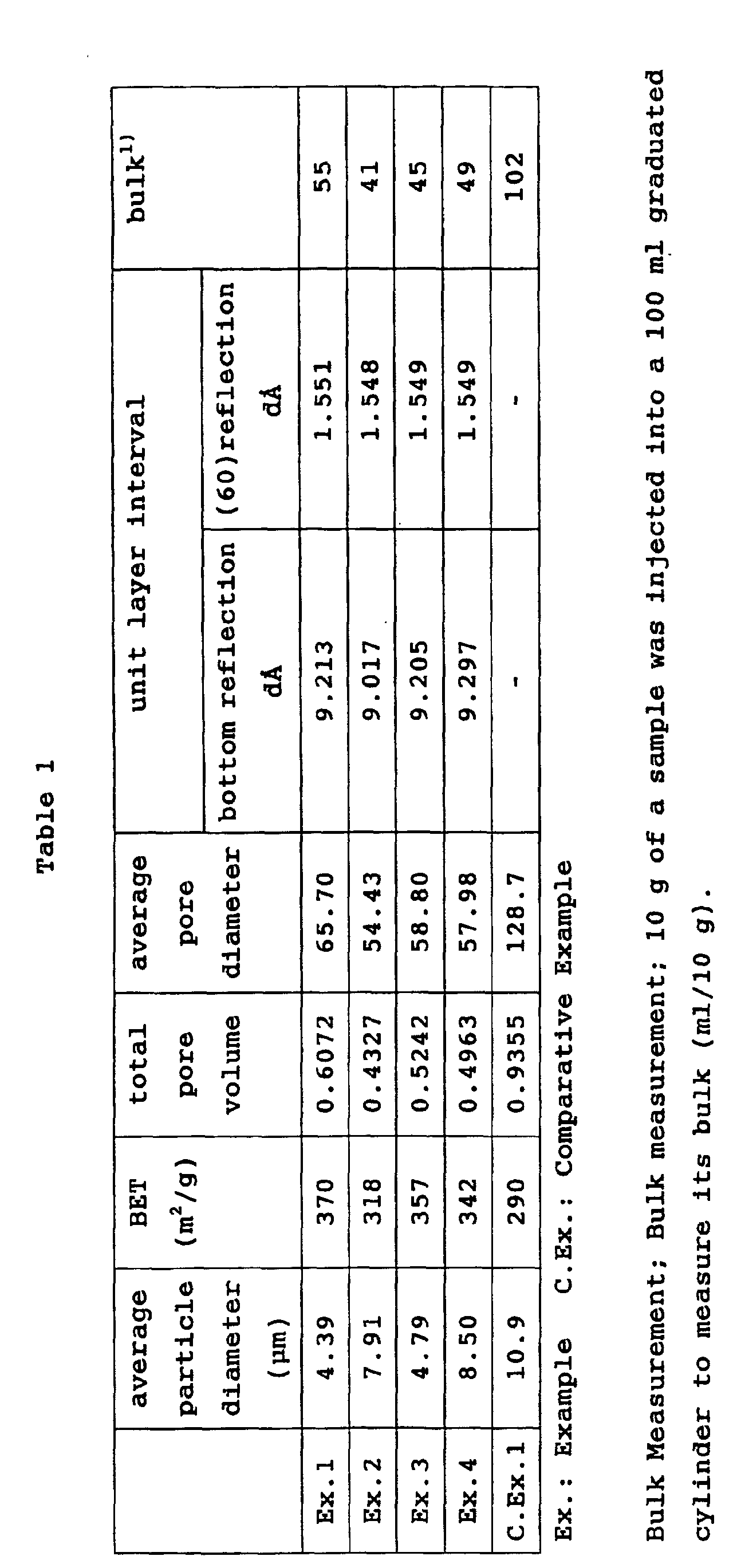 • the serpentine compound should have a specific surface area measured by a BET method of 150 to 500 m 2 /g, preferably 200 to 500 m 2 /g. It is desirable that it should have a total pore volume measured by an N 2 gas adsorption method of 0.40 to 1.20 mL/g, preferably 0.45 to 1.20 mL/g. It is advantageous that the serpentine compound should have an average pore diameter measured by the N 2 gas adsorption method of 40 to 150 ⁇ , preferably 50 to 150 ⁇ . It is also advantageous that the serpentine compound should have an average particle diameter of 1 to 15 ⁇ m, preferably 1 to 10 ⁇ m.