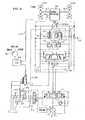 - FIG. 2 shows the travel motion hydraulic circuit in the hydraulically driven vehicle achieved in the first embodiment of the present invention.