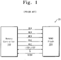 - Figure 1 illustrates a basic flash memory system 20, including a memory controller 100 and a NAND flash memory device 200.