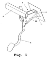 - the shaft 7 of the pedal 6 advances towards the driver in greater magnitude than the connection point between the pedal 6 and the rod 10, causing the shoe 11 on the pedal 6 to effectively move back.