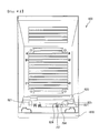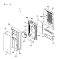 - An opening/closing device 300 is disposed between the front panel 100 and the front frame 200, for opening and closing the side discharge holes 220.