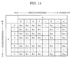 - information of the trajectories shown in Fig. 11 or information corresponding thereto is stored in advance, and zooming is performed by moving the focusing lens along a trajectory selected from among the trajectories on the basis of the positions of the focusing lens and the zoom lens.