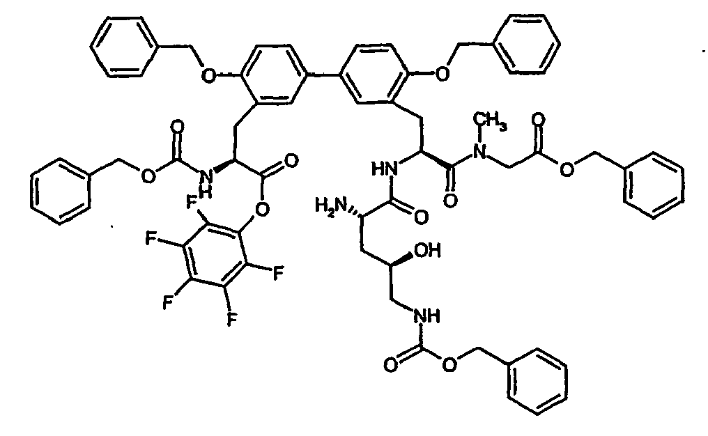 - PUDKBMPFNDRMEC-VDBGWADVSA-N C[C@H](CCNC(OCc1ccccc1)=O)[C@@H](C(N[C@@H](Cc(cc(cc1)-c(cc2C[C@@H](C(Oc(c(F)c(c(F)c3F)F)c3F)=O)NC(OCC3C=CC=CC3)=O)ccc2OCc2ccccc2)c1OCc1ccccc1)C(OCc1ccccc1)=O)=O)NC(OC(C)(C)C)=O Chemical compound C[C@H](CCNC(OCc1ccccc1)=O)[C@@H](C(N[C@@H](Cc(cc(cc1)-c(cc2C[C@@H](C(Oc(c(F)c(c(F)c3F)F)c3F)=O)NC(OCC3C=CC=CC3)=O)ccc2OCc2ccccc2)c1OCc1ccccc1)C(OCc1ccccc1)=O)=O)NC(OC(C)(C)C)=O PUDKBMPFNDRMEC-VDBGWADVSA-N 0.000 description 1