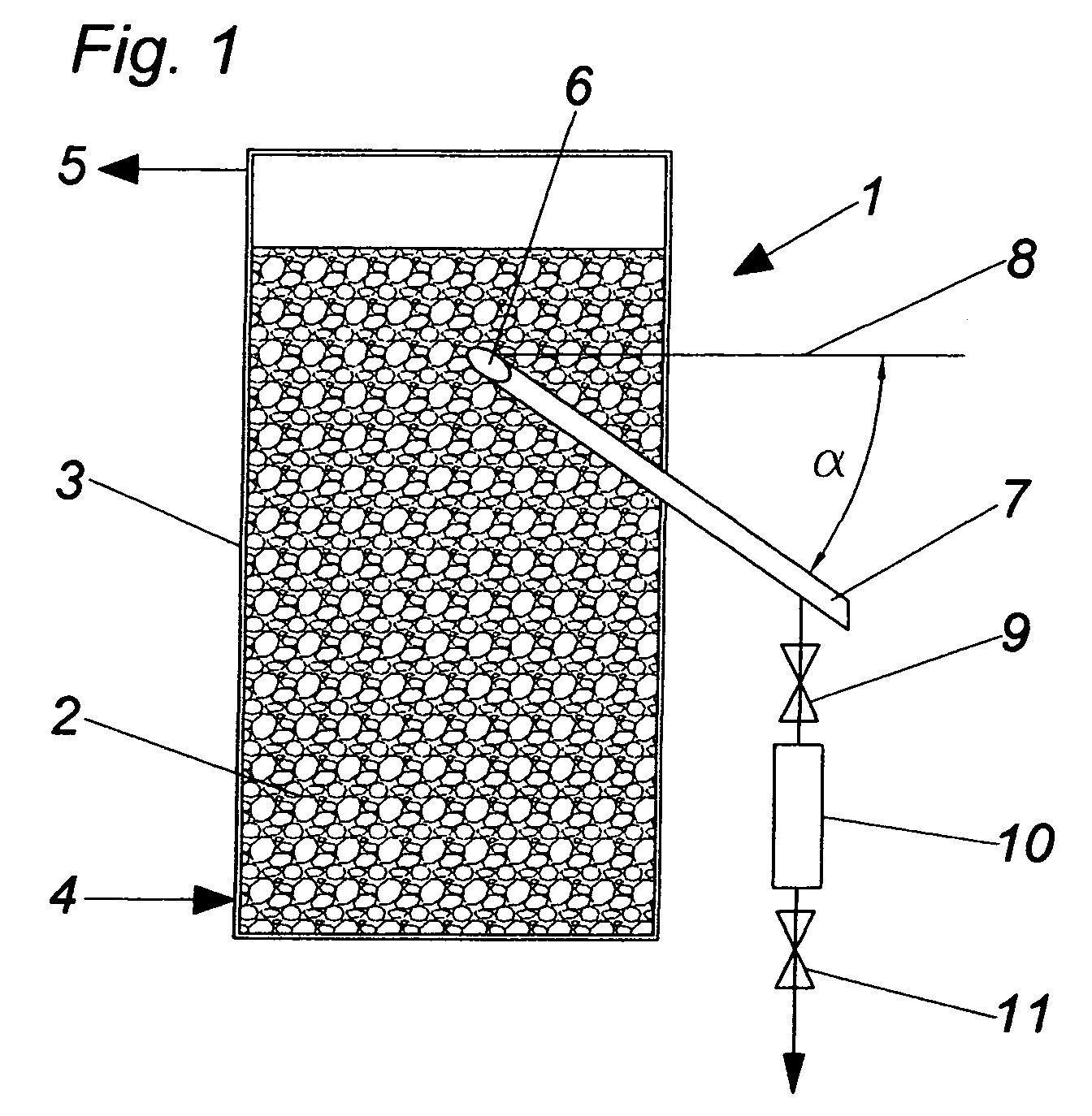 - the bulk material 2 is not taken from above but laterally, otherwise the bulk material 2 through the underlying arrangement of the tube 7 no representative sampling point would represent because this area is not uniformly interspersed by the gas flowing up becomes.