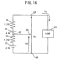 - Fig. 15 is a circuit diagram of an arrangement of batteries when an alkaline battery and a manganese battery are mixed;