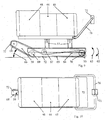 - FIGS 6 to 10 show a Treppensiereaugliches storage system, where it can be seen that a chassis 75 has lateral slide rails 74 and between a drive body is arranged, which consists essentially of a in Arrow direction 73 and in the opposite direction drivable drive belt 72nd is, wherein this drive belt 72 according to Figure 7 corresponding projections, Nubs or ribs has, so on a height offset edge of a staircase attack and raise the entire chassis 75 over that edge of the stairs to transport.