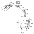 - a supporting base 10 is detachably attached to a mounting body 11 such as a floor or a bed. Arms 12a, 12b, 12c are joined to the supporting base 10 via joints 13a, 13b, 13c in sequence.
