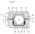 - the grooves 46 are also disposed on the non-visible in Figure 5, the lower side of the sealing portion 36, so that the sealing insert 34 is symmetrical to two mutually perpendicular planes. The first of these planes passes through the slot 44, and the intersection of the two planes coincides with the central axis of the sealing insert 34 and thus also with the central axis of the cable 8.