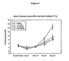 - the invention involves the use of at least one GLP-1 or a GLP-1 agonist having GLP-1 effect for the manufacture of a medicament for preventing or treating diabetes in a mammal, wherein the amount and timing of administration of said medicament are such as to prevent or treat diabetes in the mammal, comprising reducing administration of the GLP-1 or related molecule below about the therapeutically effective amount for a time conducive to producing a drug holiday, wherein the drug holiday is further defined as a time interval between a first endpoint following the reduction in administering the GLP-1 or related molecule and a second endpoint.