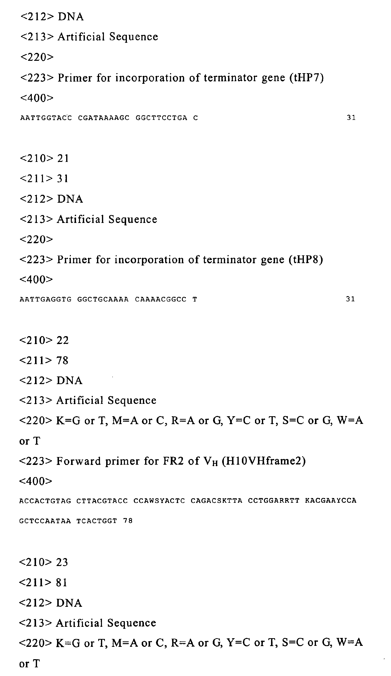 phages displaying only VH and soluble VL fragments, the VH/VL