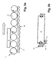 - FIGS. 1a and 1b a first embodiment of the device is shown. It has a first conveyor 1 and a second conveyor 2. Of the The first conveyor 1 is used to transport piece-like products along a conveyor line 5. The second conveyor 2 closes downstream in the conveying direction T to the first conveyor 1 and serves for at least temporary storage or storage of the products along a storage path 6.