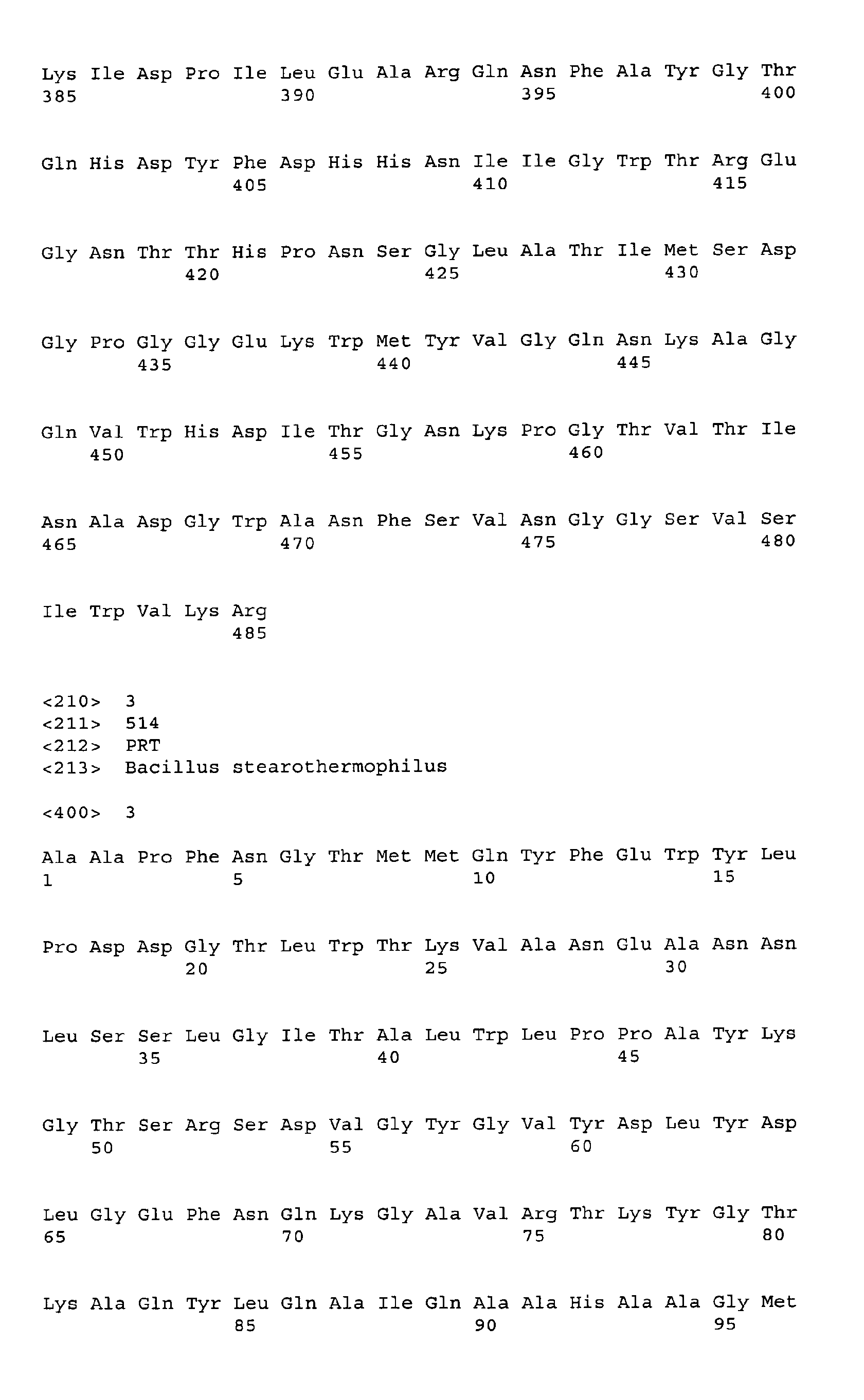 - a nucleotide sequence encoding a B. stearothermophilus ⁇ -amylase is mentioned.