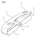 - the top wall of the forward compartment is formed in part by a portion 39 of the upper surface of the cleaning body which extends a short distance past the rear wall 37 of the forward compartment 29, and in part by a complementary shaped upper portion 41 of the forward compartment 29. Portion 41 of the forward compartment 29 is arranged to overlap the portion 39 of the upper surface of the cleaning body.