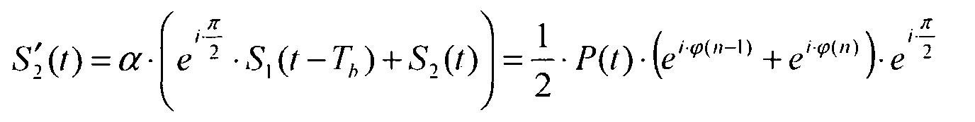 - the signal S '"/ 1 corresponding to the signal S" 1 after passing through the delay element 30 is then: S " 1 ( t ) - - 2 2 ⁇ P ( t ) ⁇ e i ⁇ ⁇ ( not -1)