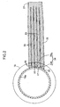 - the cutting means 29 includes a rotating receiving blade 40 that rotates at a fixed position so as to be in contact with the lower face of the band-shaped friction material 21, and one rotating round blade 41 or a plurality of coaxial rotating round blades 41 that rotate so as to be in contact with the outer periphery of the rotating receiving blade 40 and cut the band-shaped friction material 21 along its longitudinal direction, thus forming a plurality of strip-shaped friction materials 22 and 23. Since the five strip-shaped friction materials 22 and 23 are formed from the band-shaped friction material 21 in the first embodiment, four coaxially rotating round blades 41 rotate so as to be in contact with the outer periphery of the rotating receiving blade 40.