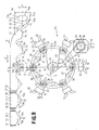 - the folding mechanism includes a plurality of positive motion cams arranged at regular intervals in said circumferential direction along the peripheral zone of said first rotary disc and rotatably mounted on said first rotary disc by means of shafts extending in said thickness direction of said diaper structure; each of said folding plates has links mounted on proximal ends of said guide arms, a rod connected to said guide arms by means of said links and a pin extending in said thickness direction of said diaper structure from an end of said rod lying aside of said first base wherein said pin is slidably inserted into an eccentric cam groove of said positive motion cam; said positive motion cams revolve about the axis of said first rotary disc as said first rotary disc rotates around its own axis, said positive motion cams makes one rotation (360° rotation) about its own axis in the peripheral zone of said first rotary disc while said first rotary disc makes one rotation (360° rotation) about its own axis, and movement of said pin along said cam groove causes said rod to move forward and backward in said cross direction and thereby causes said guide arms