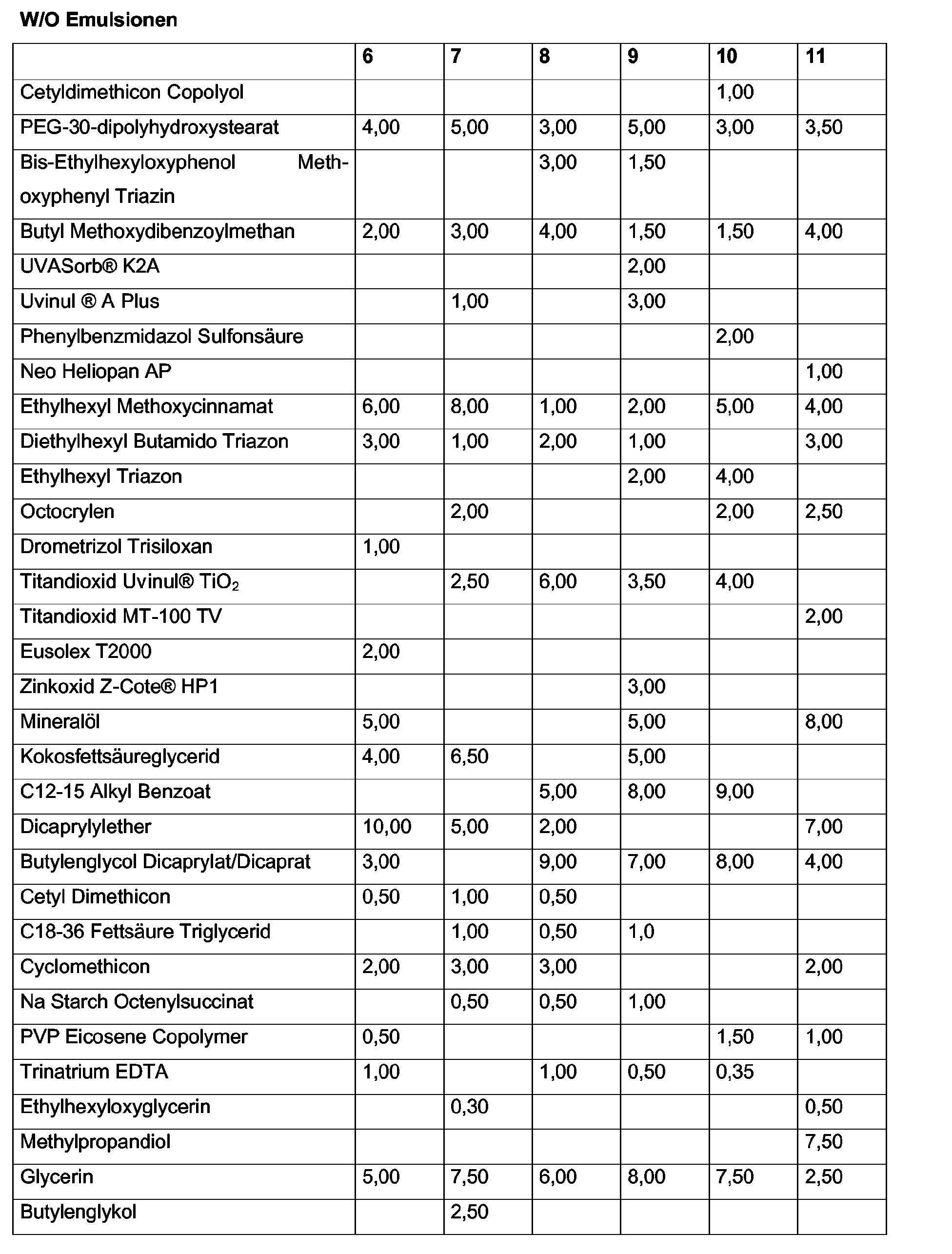 | WO2003070202A1 (de) * | 2002-02-19 | 2003-08-28 | Beiersdorf Ag | Zweiphasige sonnenschutzzubereitungen mit w/o-emulsion |