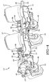 - Each steering damper 22, in turn, is mounted at its outboard end to its respective steering assembly 19 and at its inboard end to its respective bracket 24, 34, by usual fastening means such as bolts 32, 33, respectively.