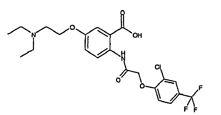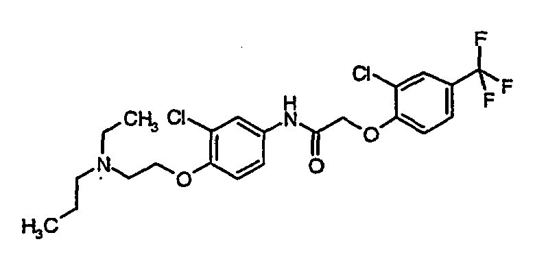 - SGUIYYYKLRJLFB-UHFFFAOYSA-N CCN(CC)CCOc(cc1)c(C)cc1N(C)C(COc(ccc(C(F)(F)F)c1)c1Cl)=O Chemical compound CCN(CC)CCOc(cc1)c(C)cc1N(C)C(COc(ccc(C(F)(F)F)c1)c1Cl)=O SGUIYYYKLRJLFB-UHFFFAOYSA-N 0.000 description 1
