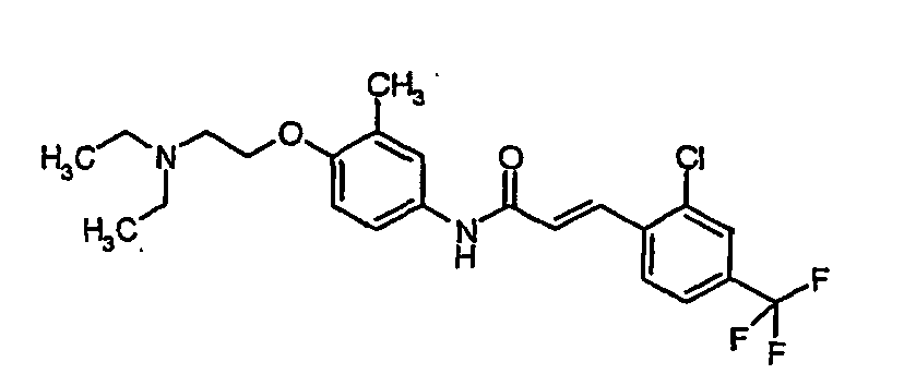 - YUZDECRWHJPRPP-UHFFFAOYSA-N CCN(CC)CCOc(ccc(NC(COc(ccc(C(C)(F)F)c1)c1Cl)=O)c1)c1OC Chemical compound CCN(CC)CCOc(ccc(NC(COc(ccc(C(C)(F)F)c1)c1Cl)=O)c1)c1OC YUZDECRWHJPRPP-UHFFFAOYSA-N 0.000 description 1