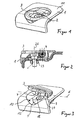 - the eyelet 3 can thus be rotated in a horizontal plane, so that when erecting the eyelet 3 the same can be brought into an optimal attack position to the effective direction of the belt of the luggage part. After exercising an outgoing from the belt holding force, the position of the eyelet 3 can be further changed both about the axis of rotation 26 and about the pivot axis 6, so that a spatial tracking of the eyelet 3 is ensured.