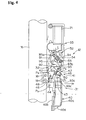 - the two threaded holes 45c and 45d of the first or outer link 45 and the adjustment screws 49 and 50 form a mechanical adjustment device that finely adjusts the top and low positions of the chain guide 40.